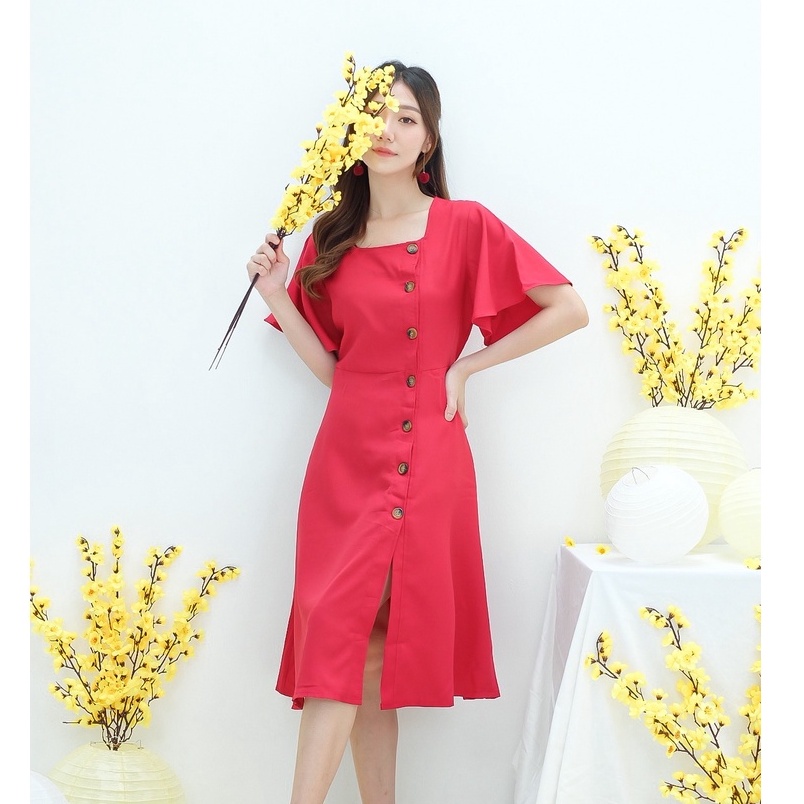 COTTONBELLS CASUAL DRESS WANITA EMMA RUFFLE SQUARE COMFY MIDI (CV - D 3622)