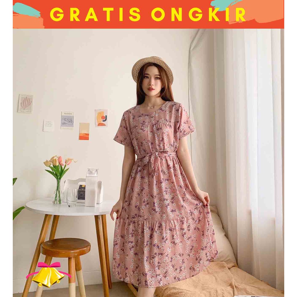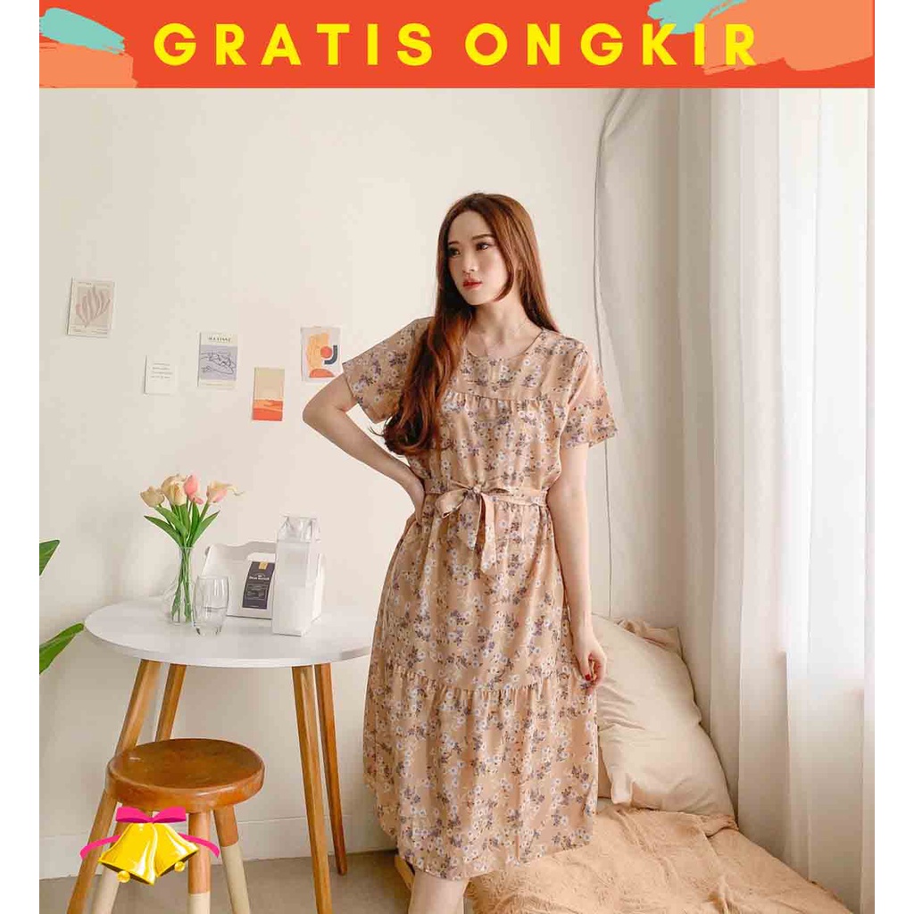 Alasan kenapa harus beli COTTONBELLS CASUAL DRESS WANITA MESHA FLORAL RUFFLE PLAID TIED MIDI (CV - D 4486) sekarang