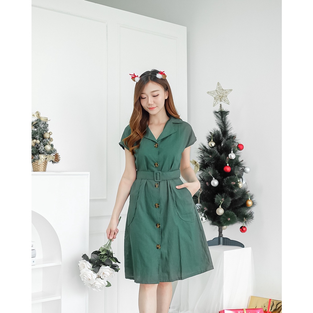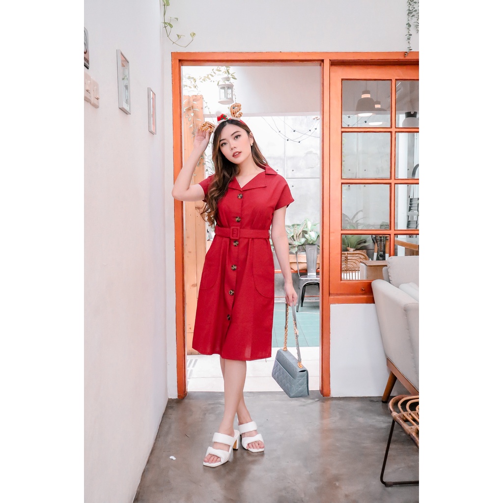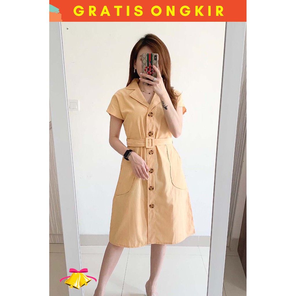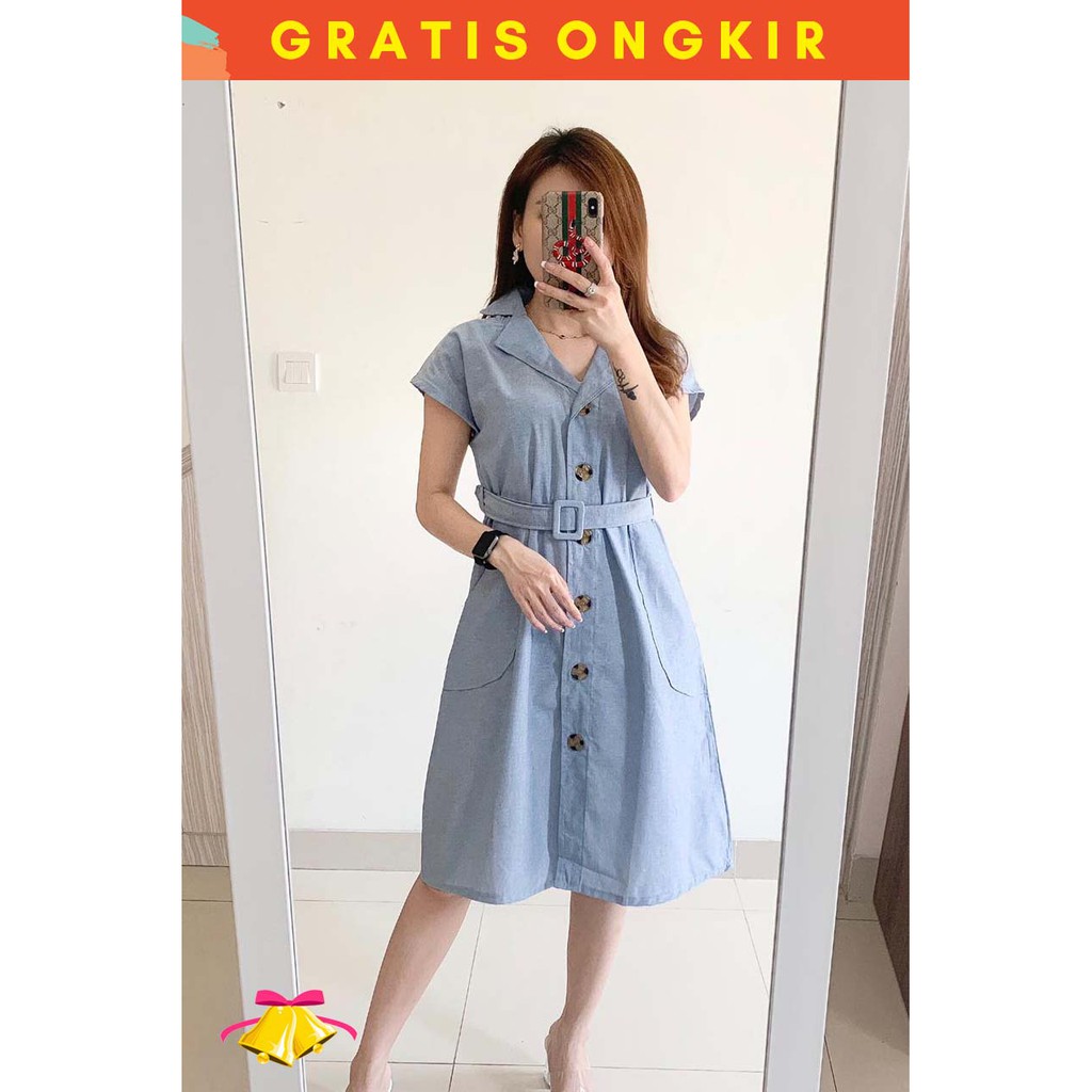 Harga COTTONBELLS CASUAL DRESS WANITA NATYA BUTTON POCKET MIDI TIED FREE BELT (AL - D 3732)