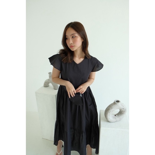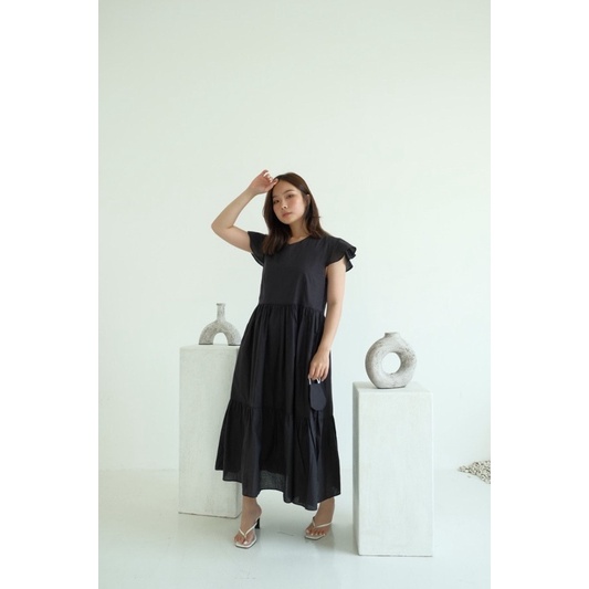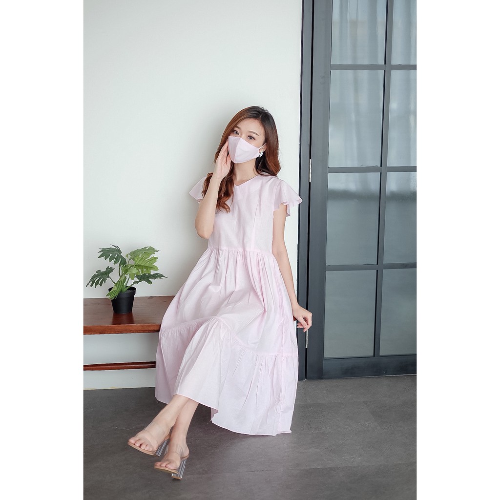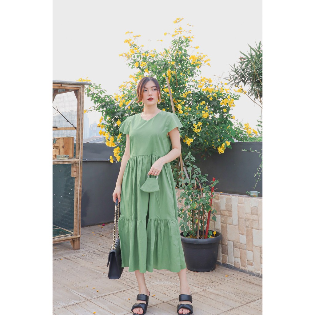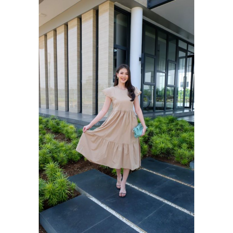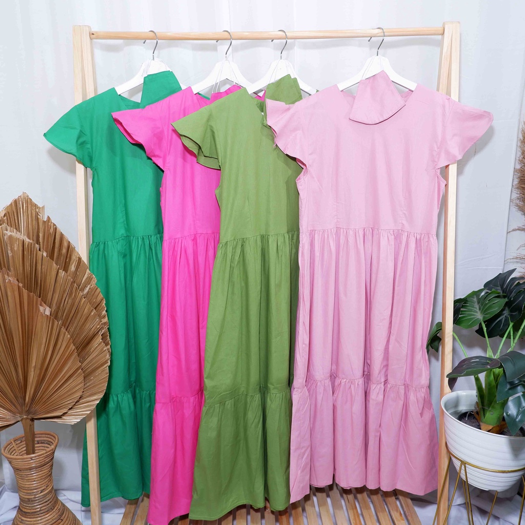 COTTONBELLS CASUAL DRESS WANITA JILLIAN BUTTON RUFFLE TIED MIDI (JJ - D 4085)