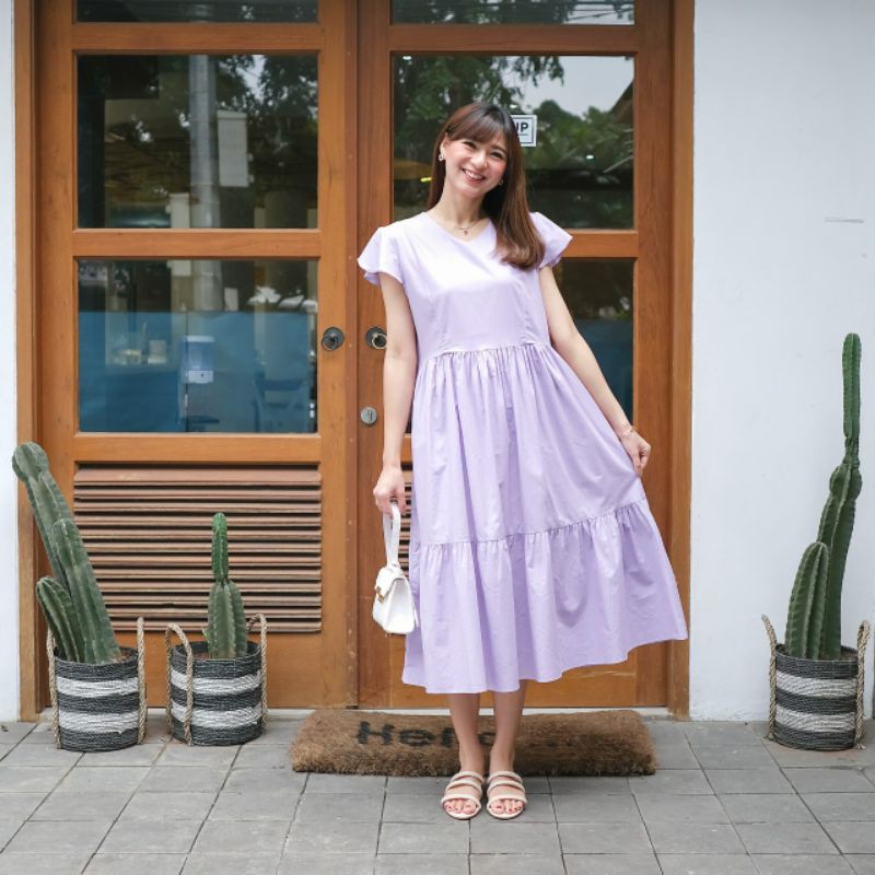 Alasan kenapa harus beli COTTONBELLS CASUAL DRESS WANITA GLENICE RUFFLE PLAID V TIED MIDI FREE MASK (AR - D 3686) sekarang