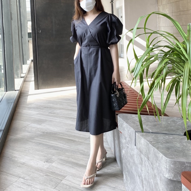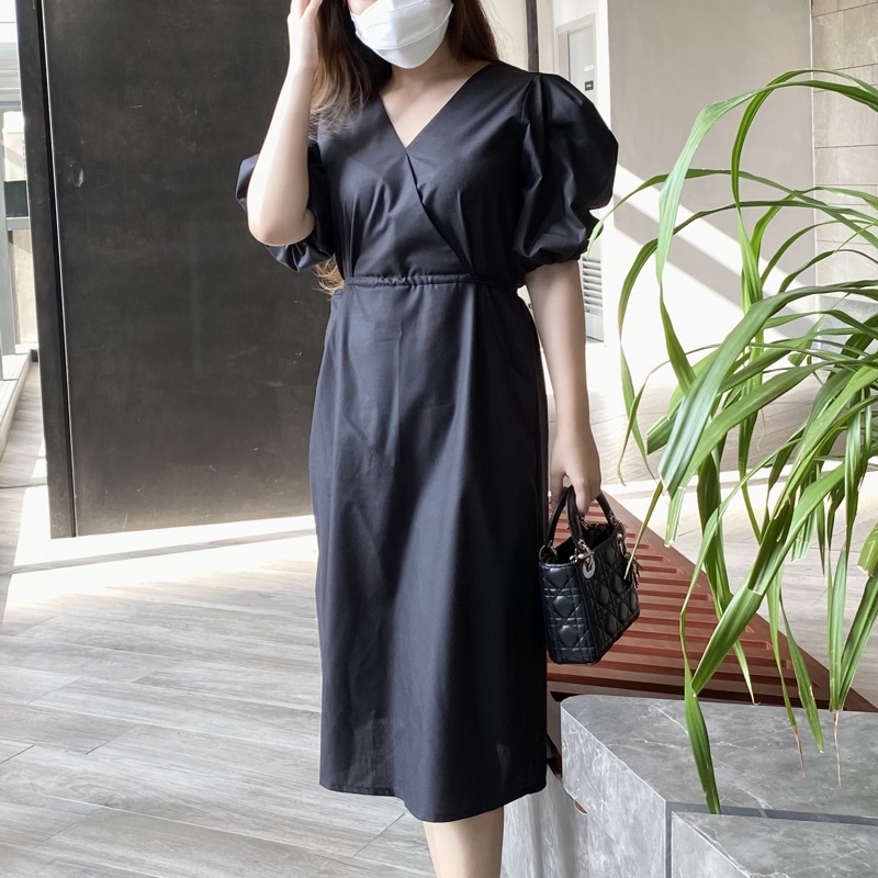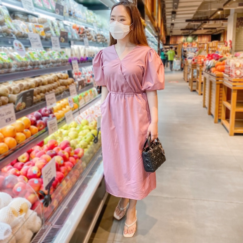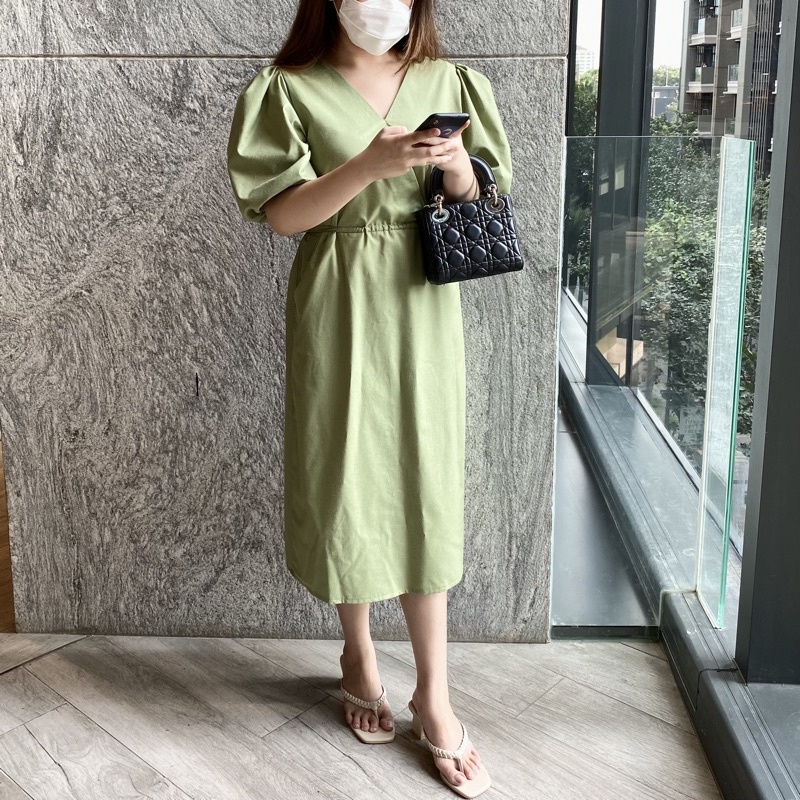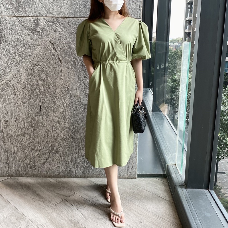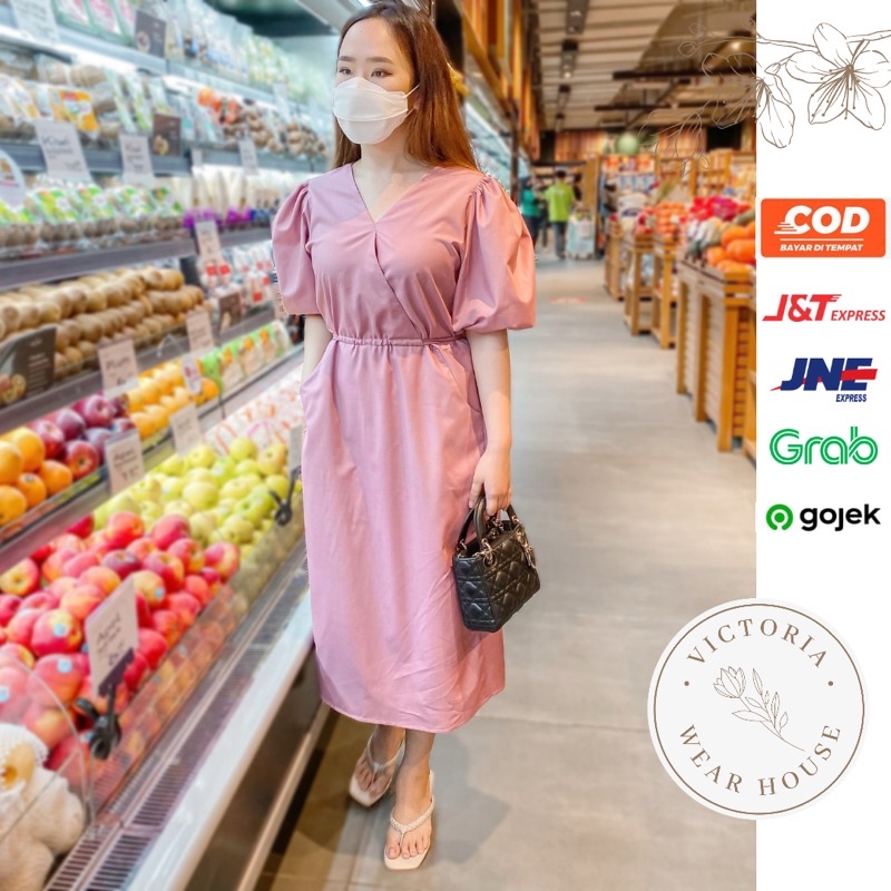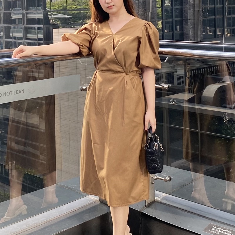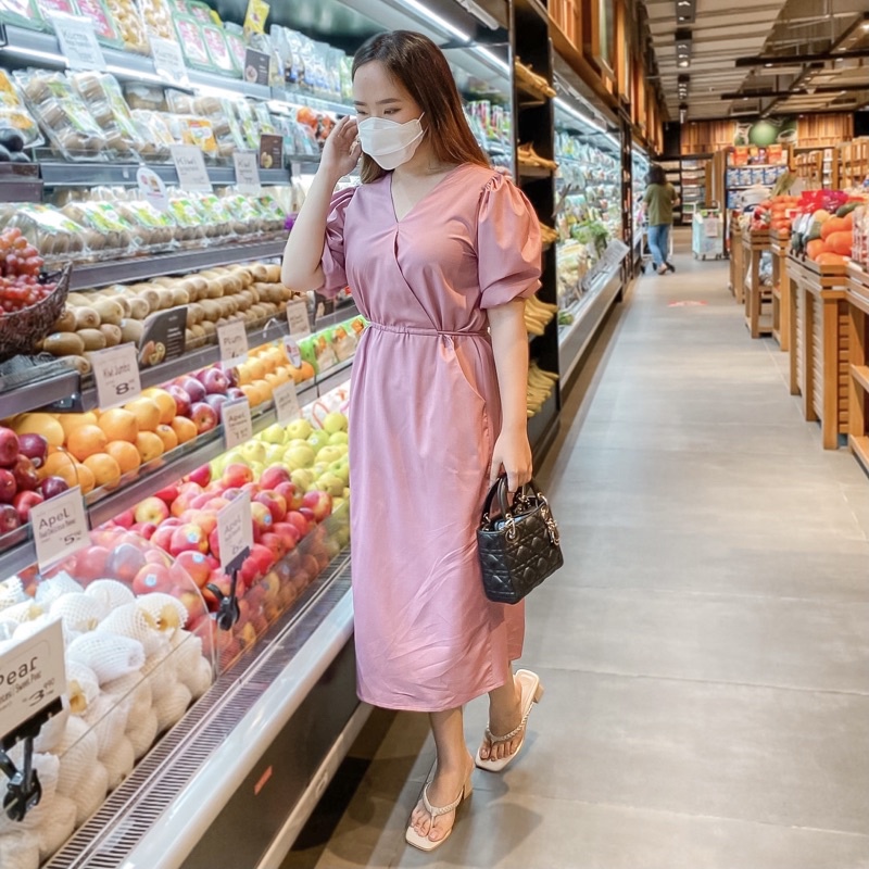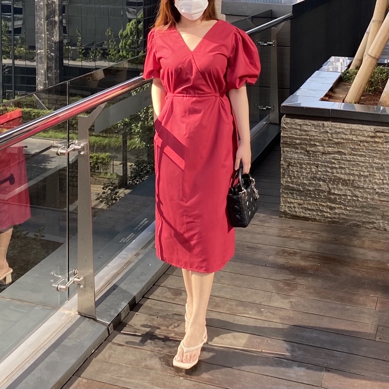 Kekurangan - Kekurangan membeli Dalmi Dress - Terusan Midi Lengan Tangan Balon Puffy Sleeve V Neck Pinggang Ikat Casual Bahan Katun Formal Pesta Korean Style Dress Wanita di Toko ini