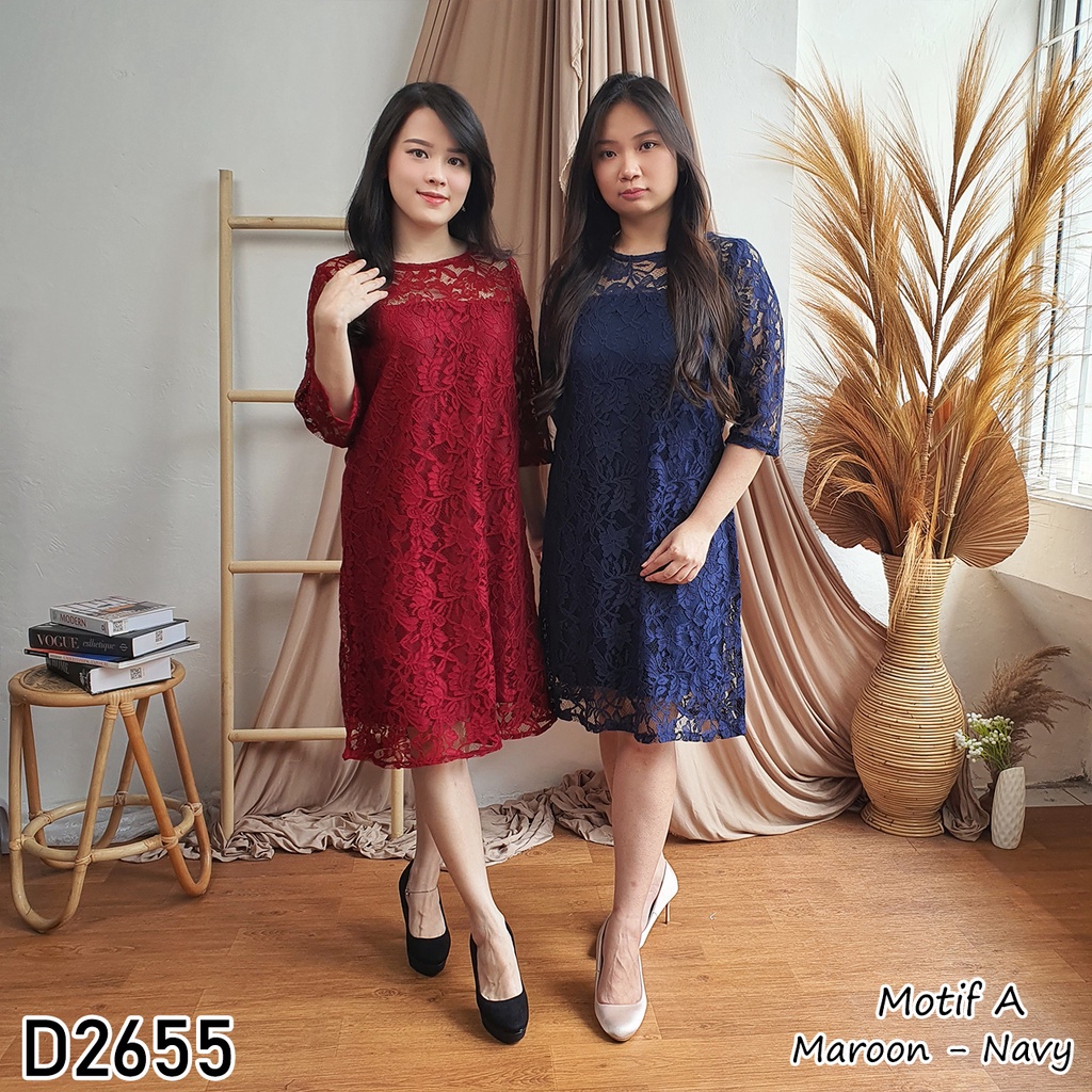 Alasan kenapa harus beli dress midi brokat lengan pendek D2655 sekarang
