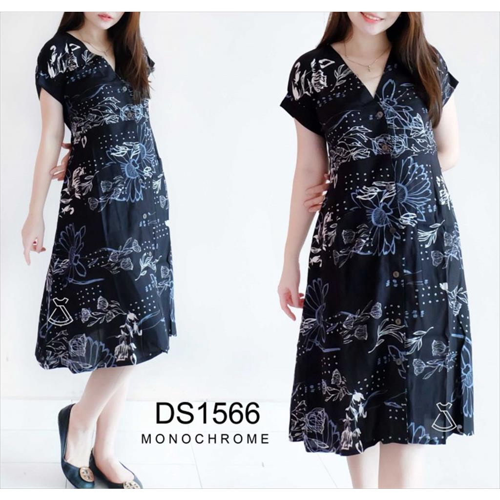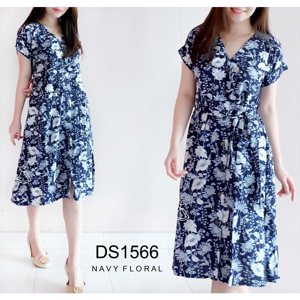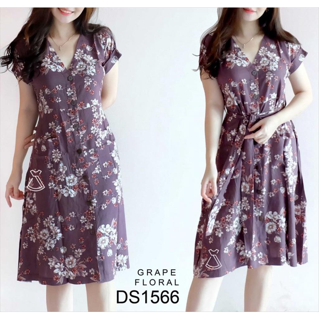 Harga DS1566 - DRESS HOMEY BUSUI FRIENDLY WANITA DRESS BUNGA MIDI FLARE CASUAL