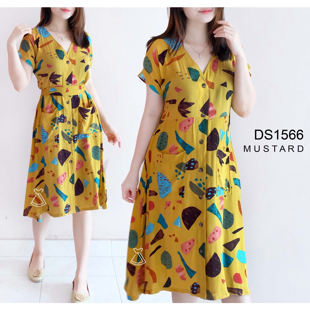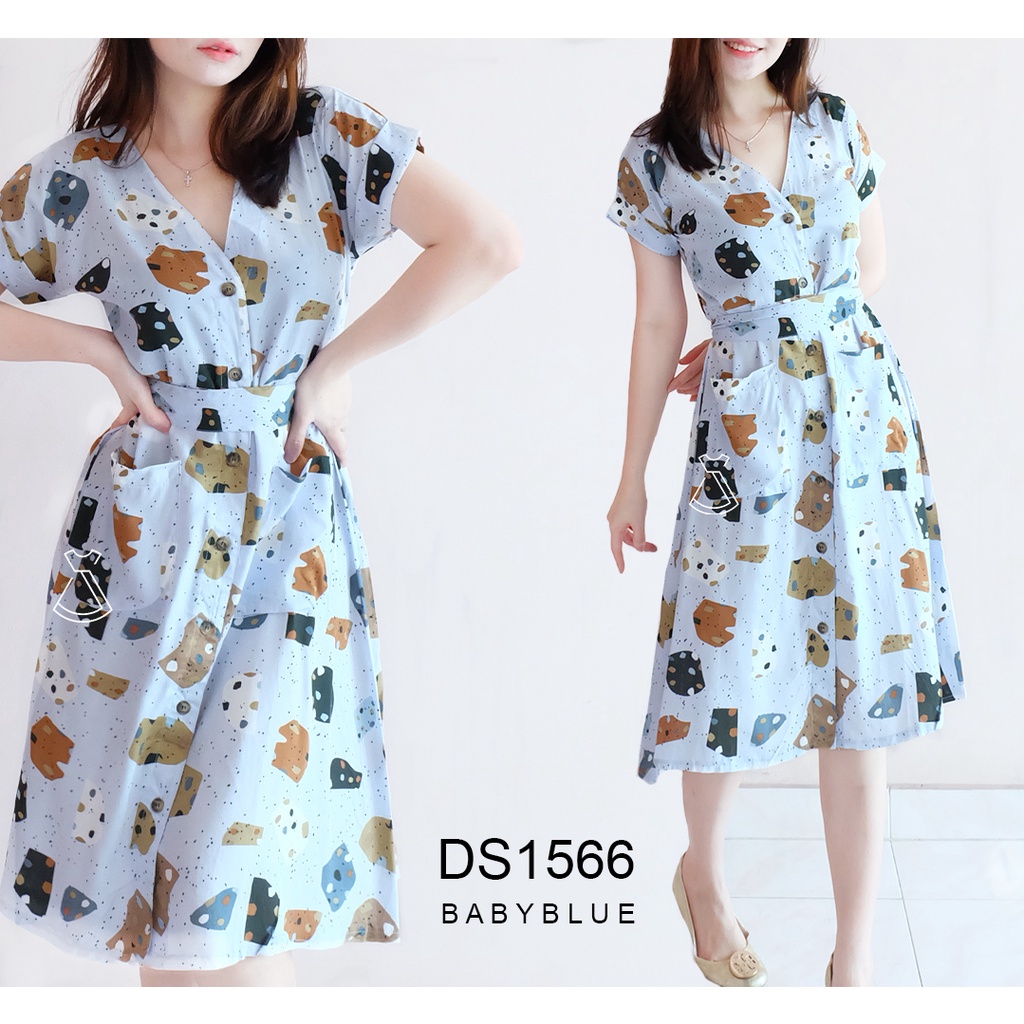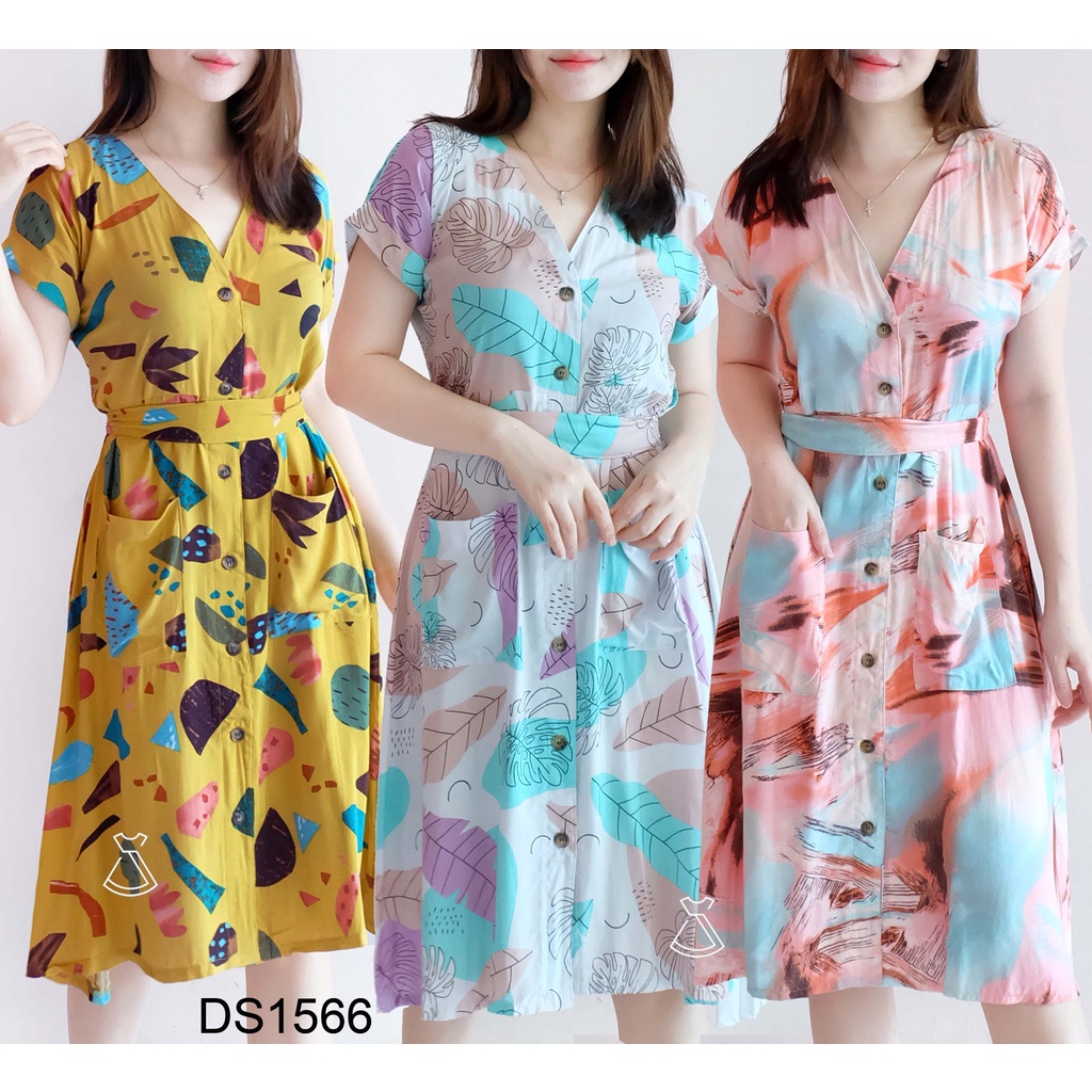 Harga DS1566 - DRESS HOMEY BUSUI FRIENDLY WANITA DRESS BUNGA MIDI FLARE CASUAL