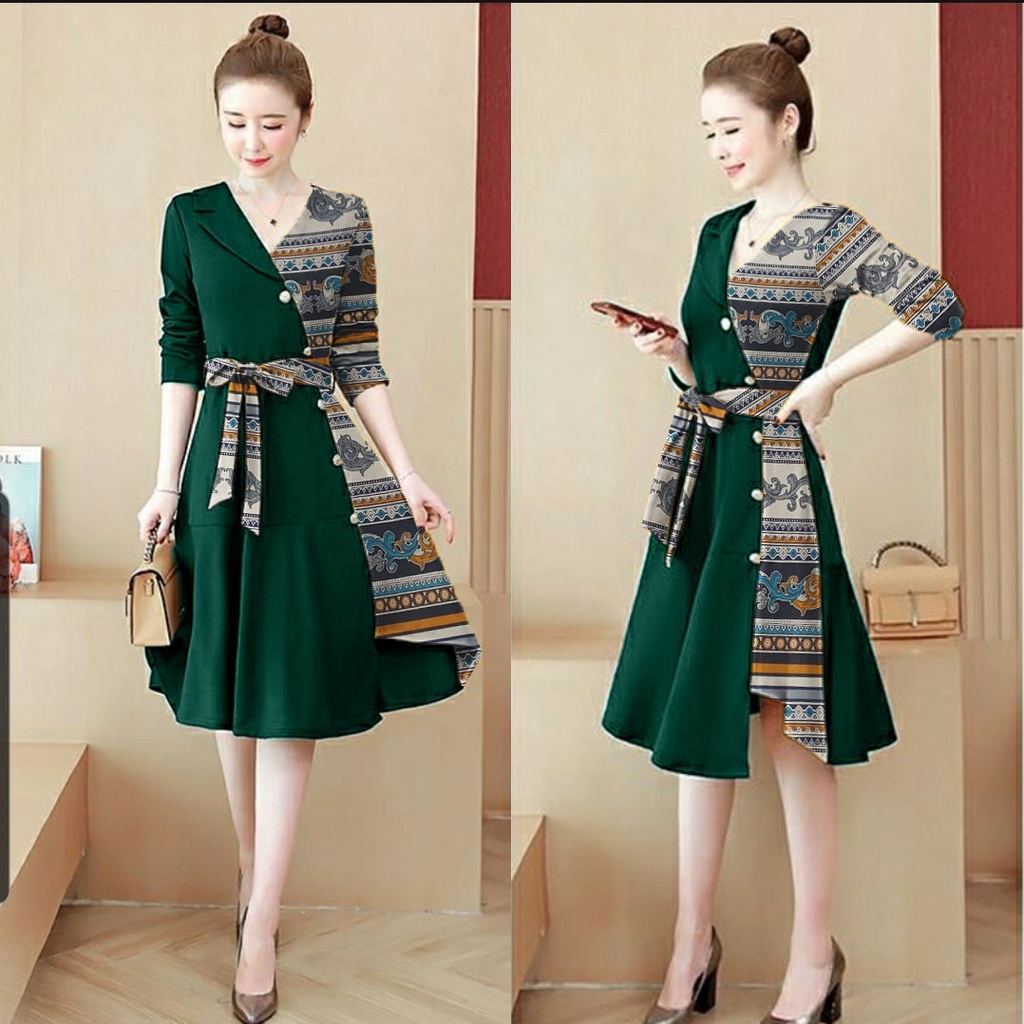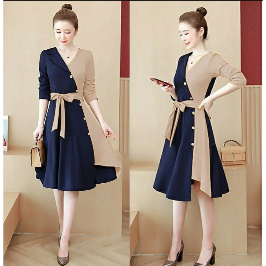 Harga FWG - DRESS RAINSA / DRESS RAINSA ELEP / DRESS RAINSA RANTING / DRESS KOREA MOTIF / DRESS WANITA