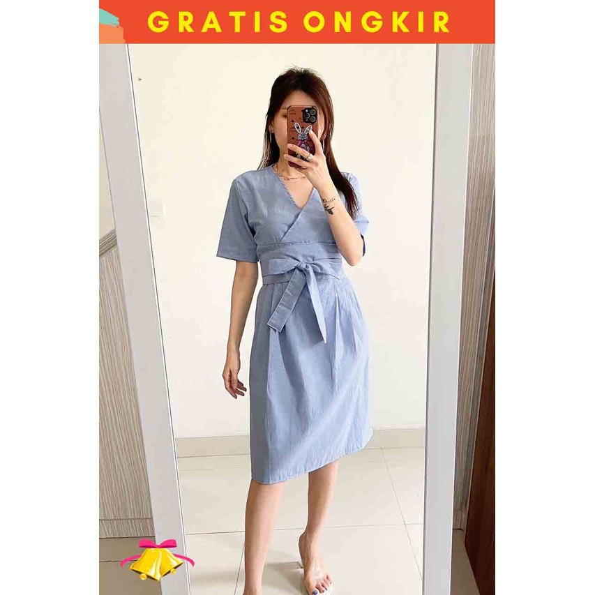 COTTONBELLS CASUAL DRESS WANITA ERICA PLAID V TIED MIDI (AL - D 4445)