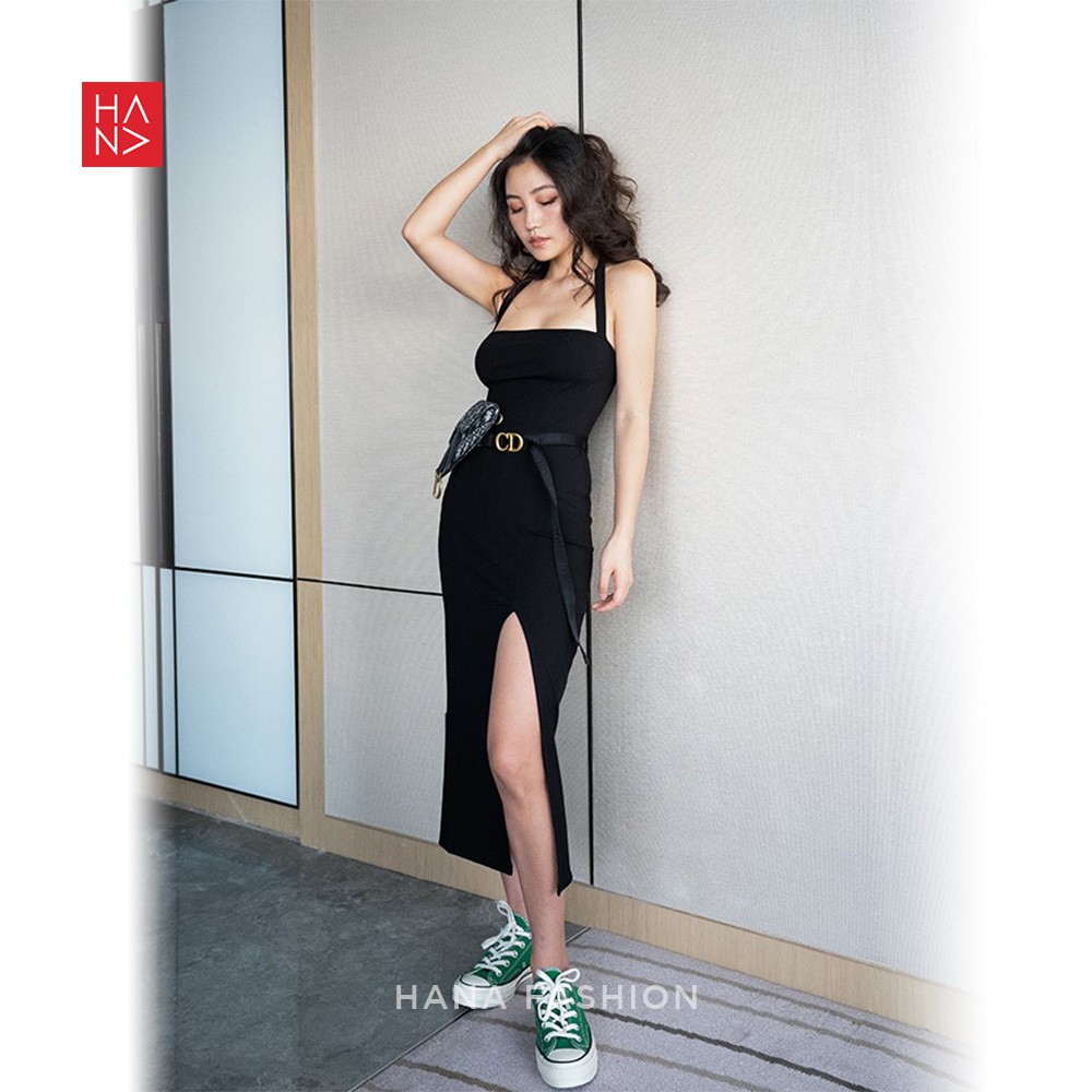 Harga HanaFashion - Kayla Midi Dress Hitam Bodycon Split Wanita - TT034