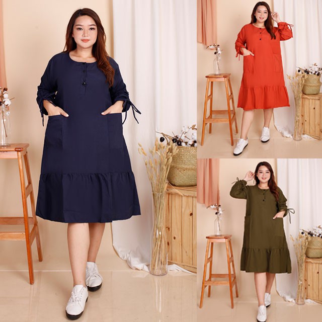Harga LD 120 CM Dress Wanita Jumbo / Dress Casual Big Size / Dress Fashion Kekinian / Dress Remaja Terbaru