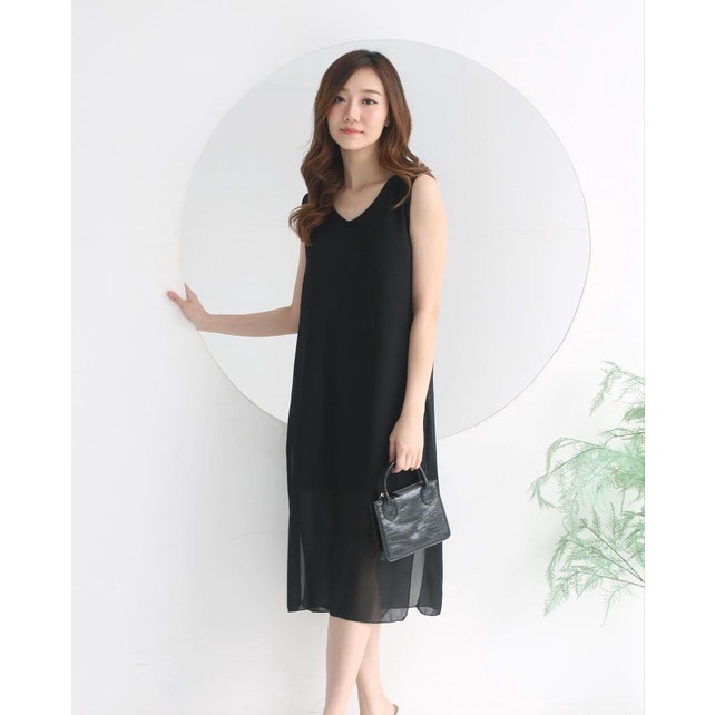 Tessa Midi Dress // Dress Midi Wanita Dress Hitam Dress Bigsize Dress Korea