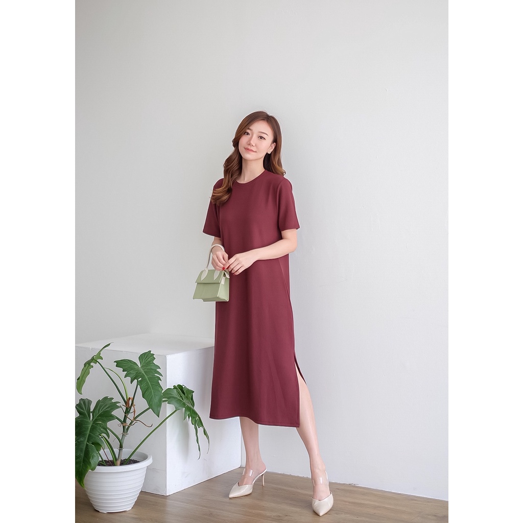 COTTONBELLS CASUAL DRESS WANITA ROSYE SLIT KNIT MIDI (GT - D 3894)