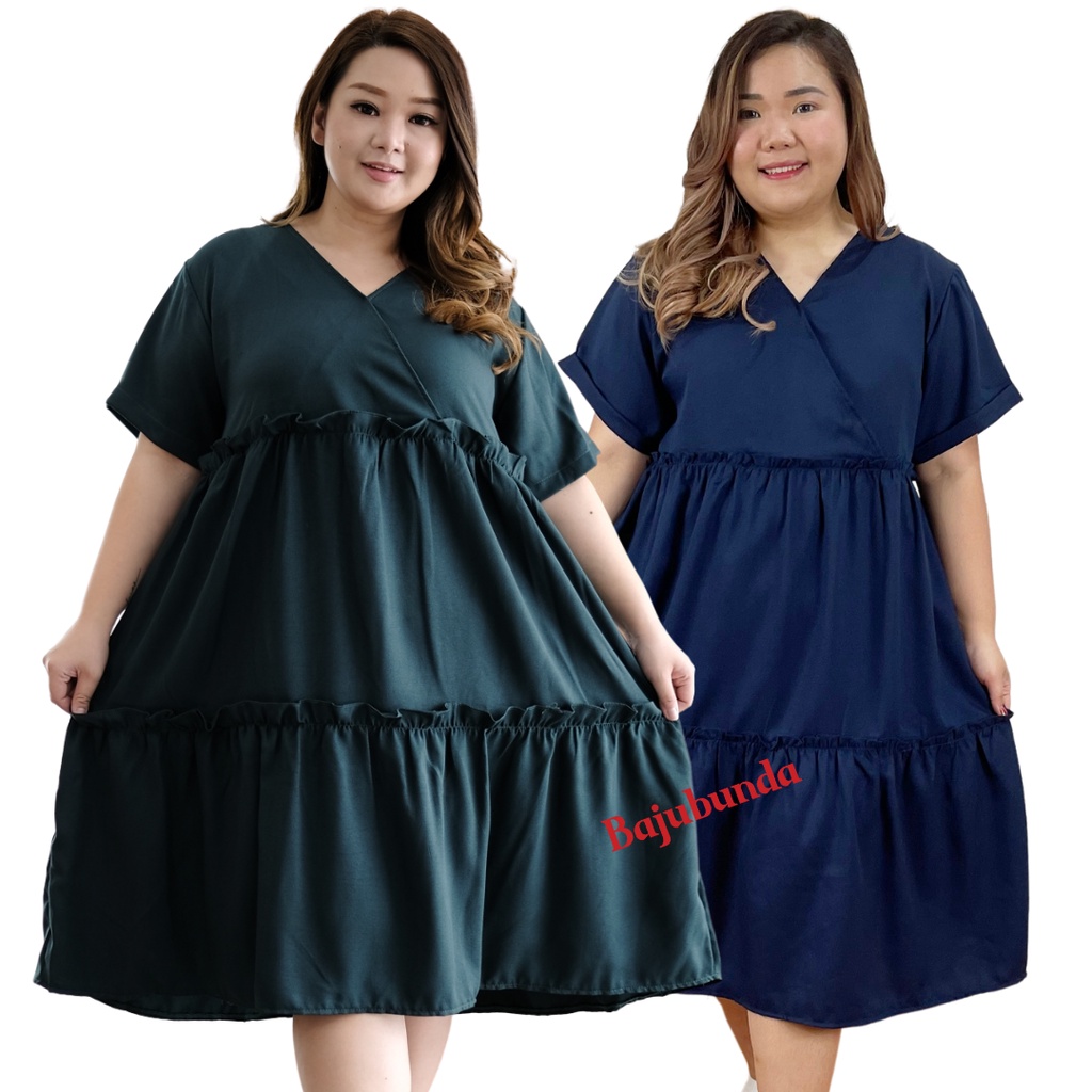 DRESS JUMBO BIG SIZE BAJU WANITA LD 120 LENGAN PENDEK POLOS KHLOE