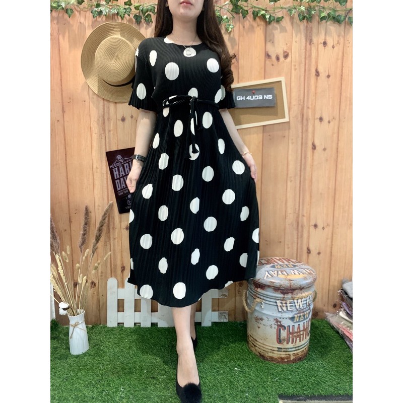 Harga MIDI DRESS POLKA BW MINI PLISKET 1279/1290