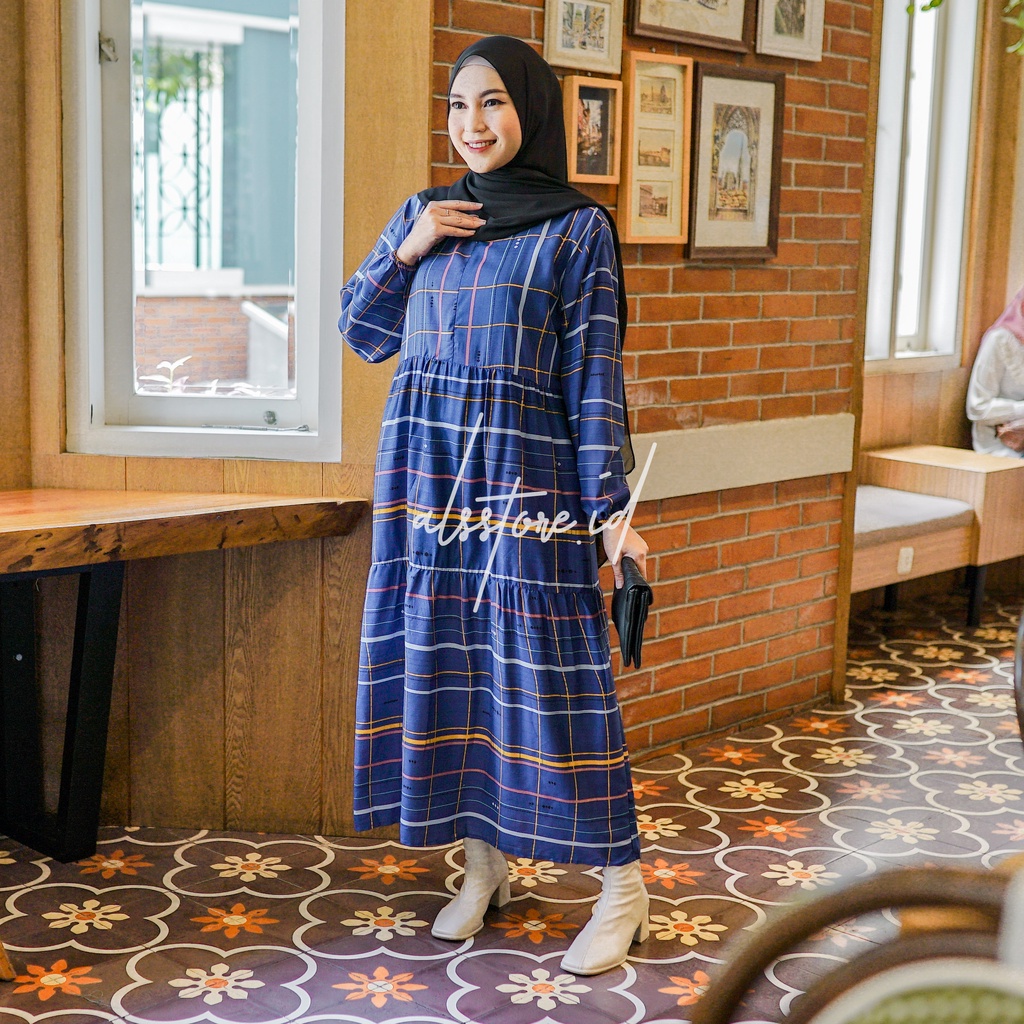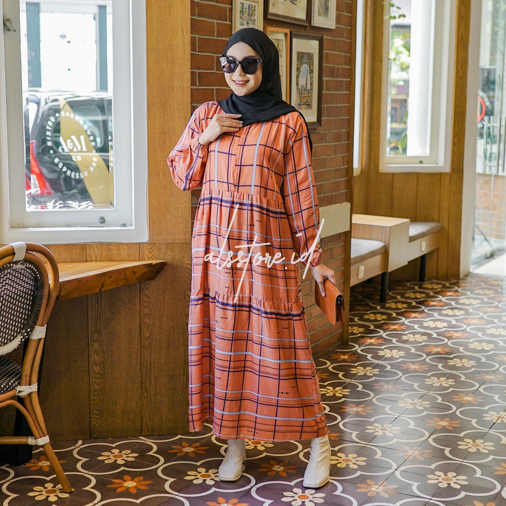 COTTONBELLS CASUAL DRESS WANITA EMILY BUTTON PLAID SQUARE MIDI (CV - D 4068)