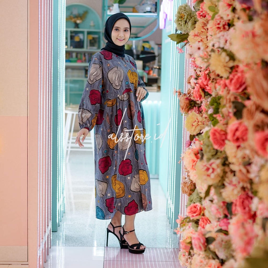 laura dress light beige, beige, dark grey, black ,lavender blue, dark navy & sage loose dress santai casual dress