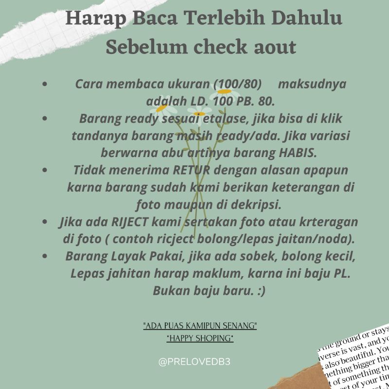 - Produk ini tidak sedang Flash Sale, tidak semua Seller suka Flash Sale, saya rasa ini bukan kekurangan, Jika Anda anggap Harga Rp. 25.000,00 itu murah untuk PRELOVED MINI DRESS 2 ya ambil saja