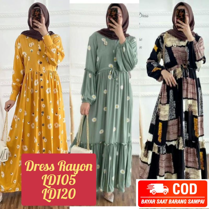 Midi Dress Wanita / Gamis Rayon