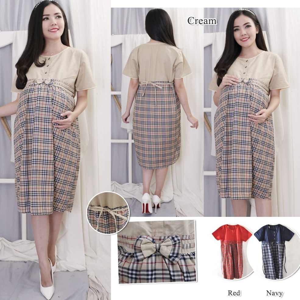 Alasan kenapa harus beli TERMURAH !!! Dress Wanita Hamil dan Busui kotak kotak-955 - Zianka Shop sekarang