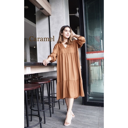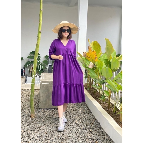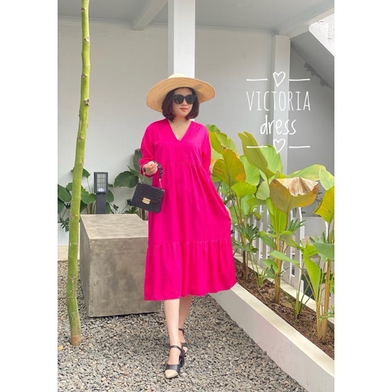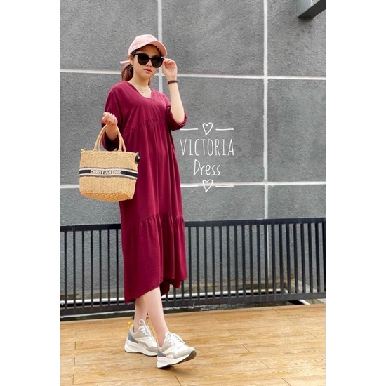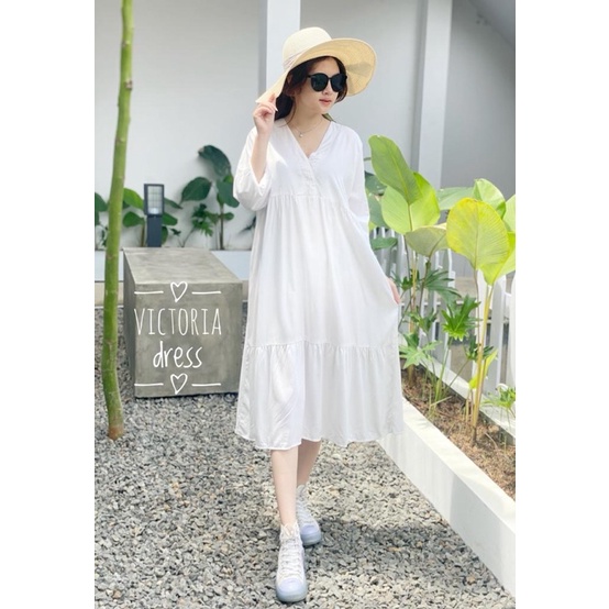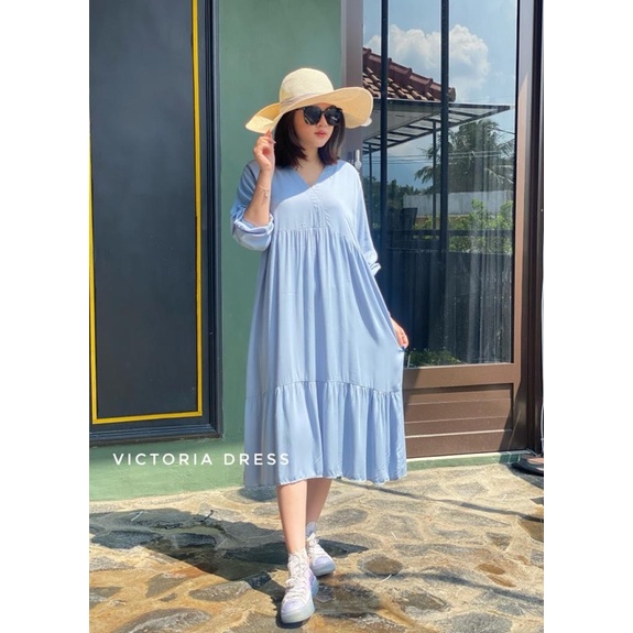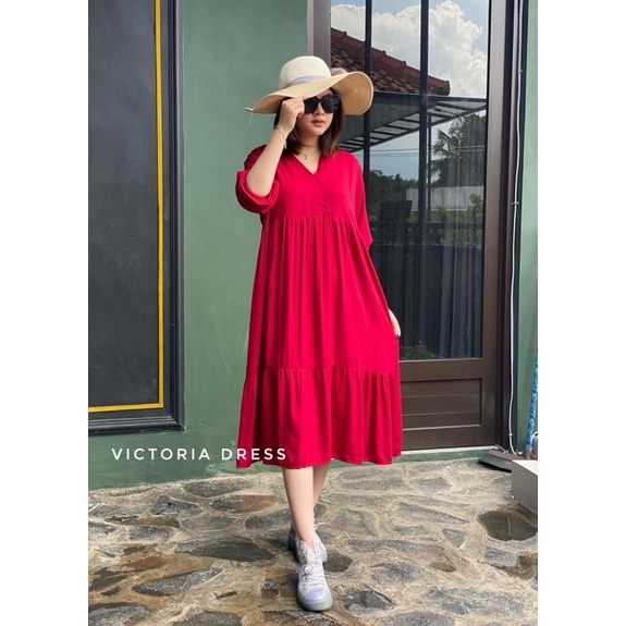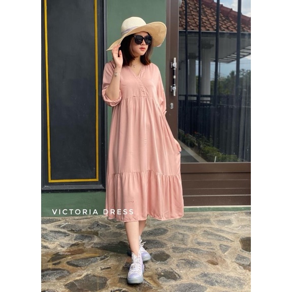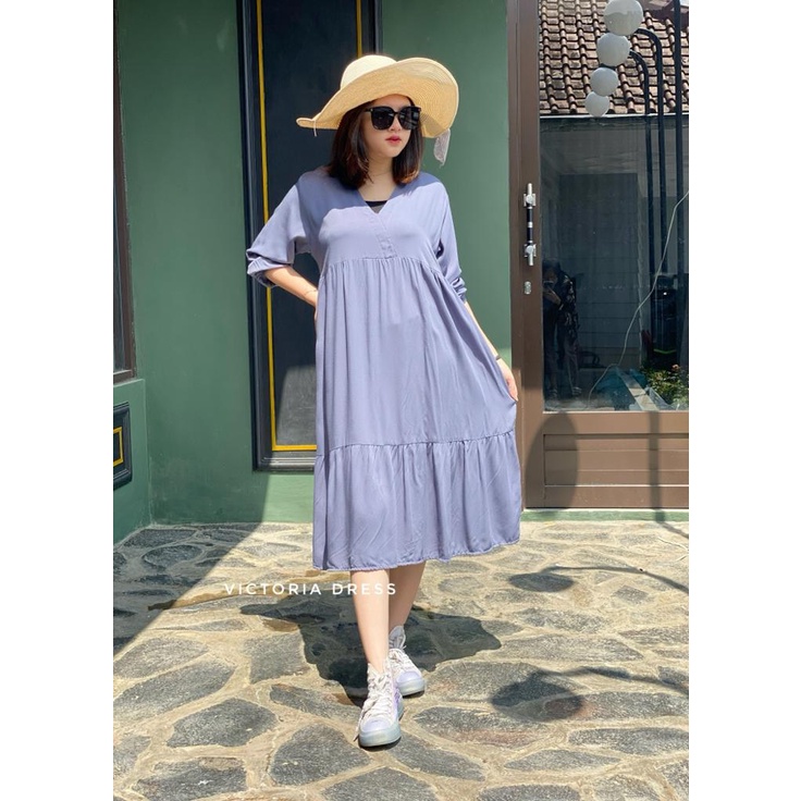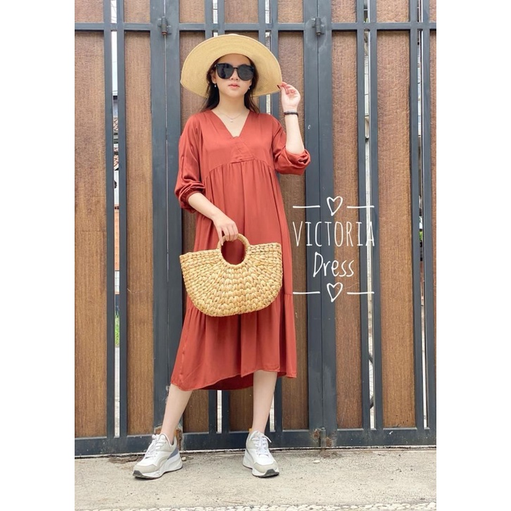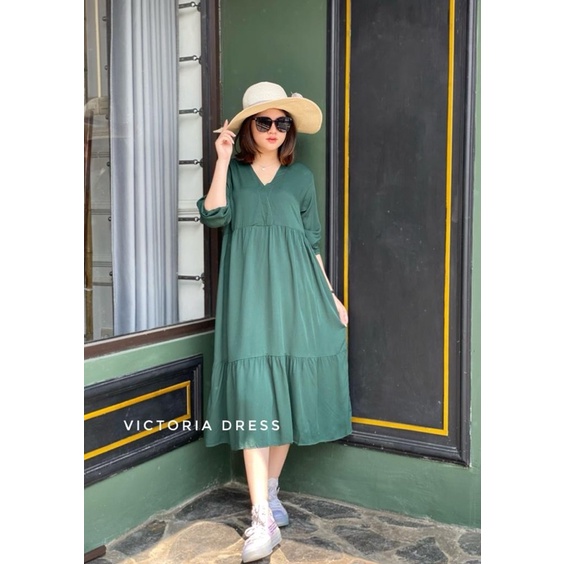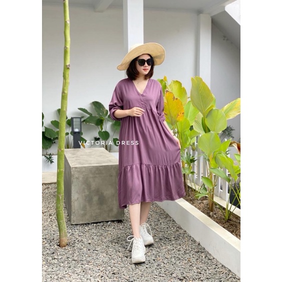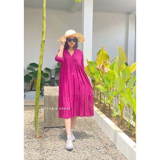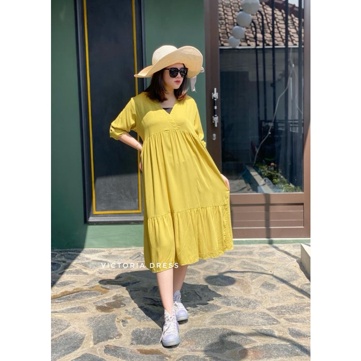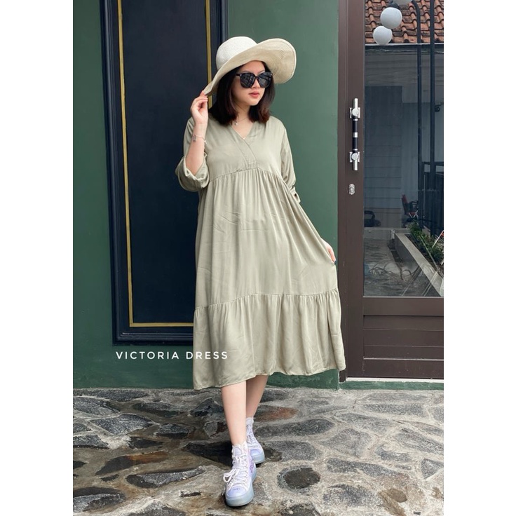 Harga VICTORIA MIDI Dress wanita / dress rayon twill / midi dress / daster viral / dress polos terbaik
