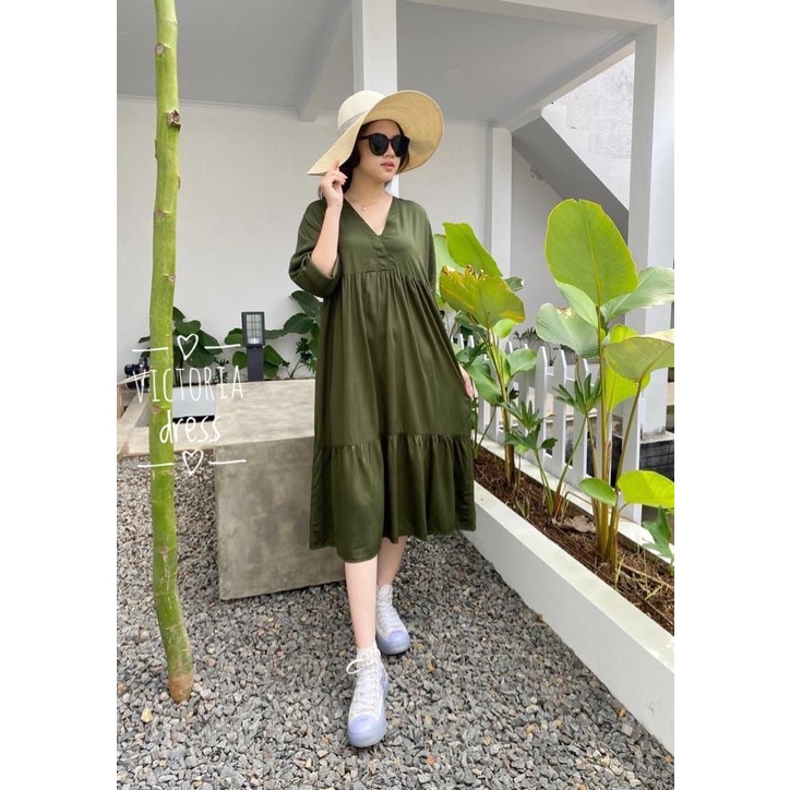 Kekurangan - Kekurangan membeli VICTORIA MIDI Dress wanita / dress rayon twill / midi dress / daster viral / dress polos terbaik di Toko ini