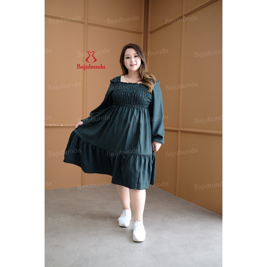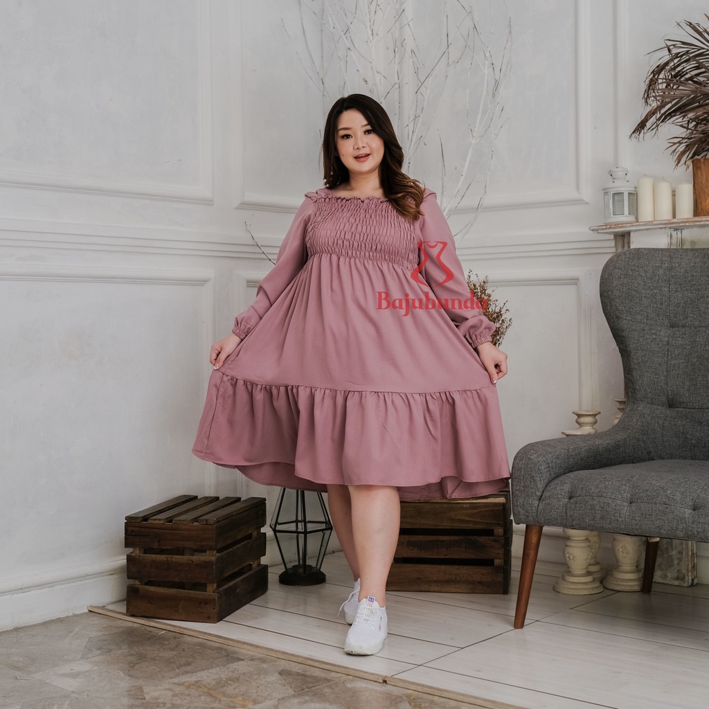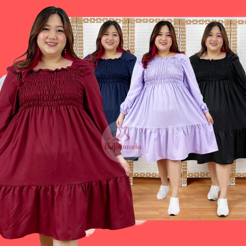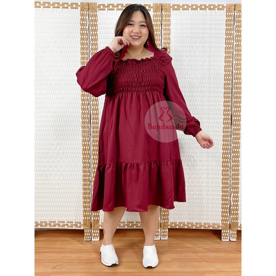 Bajubunda Dress Jumbo Wanita Big Size Polos Tangan Panjang MEGUMI