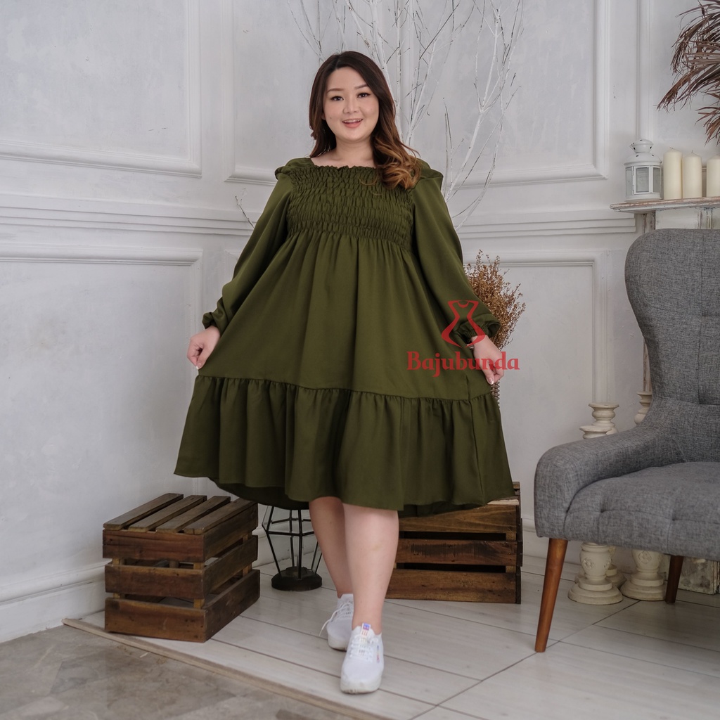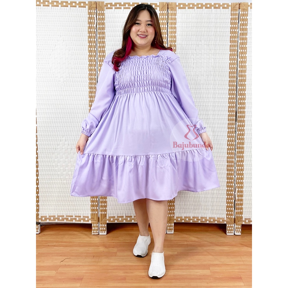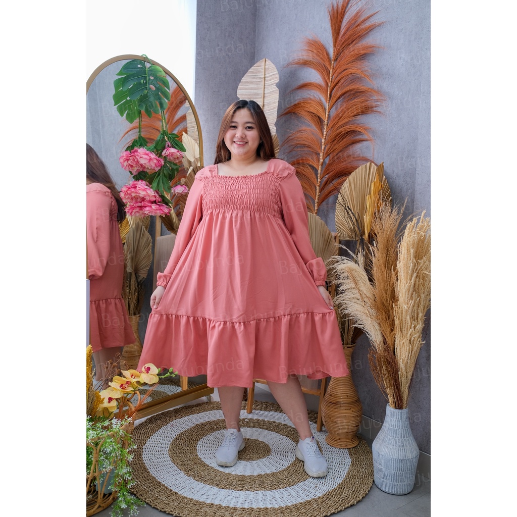 Bajubunda Dress Jumbo Wanita Big Size Polos Tangan Panjang MEGUMI