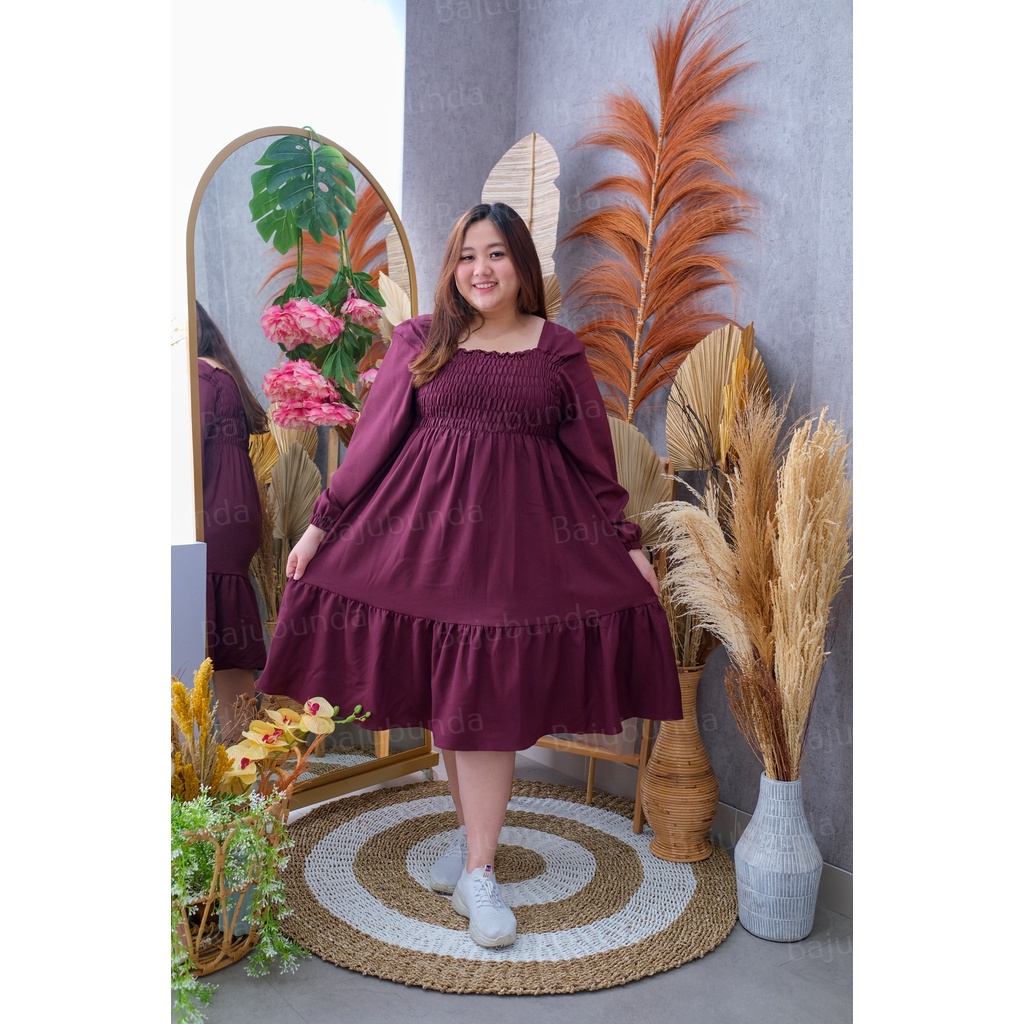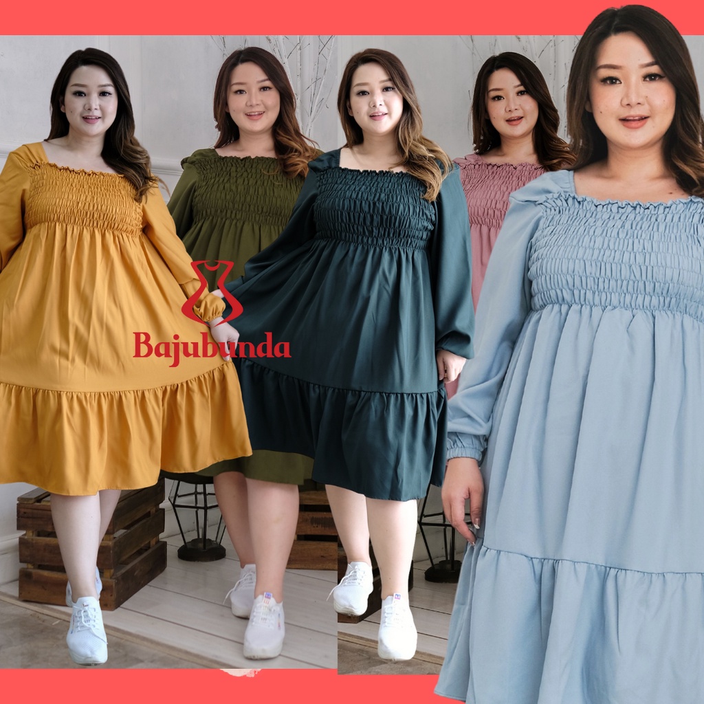 Kelebihan - Kelebihan membeli Bajubunda Dress Jumbo Wanita Big Size Polos Tangan Panjang MEGUMI di Toko ini