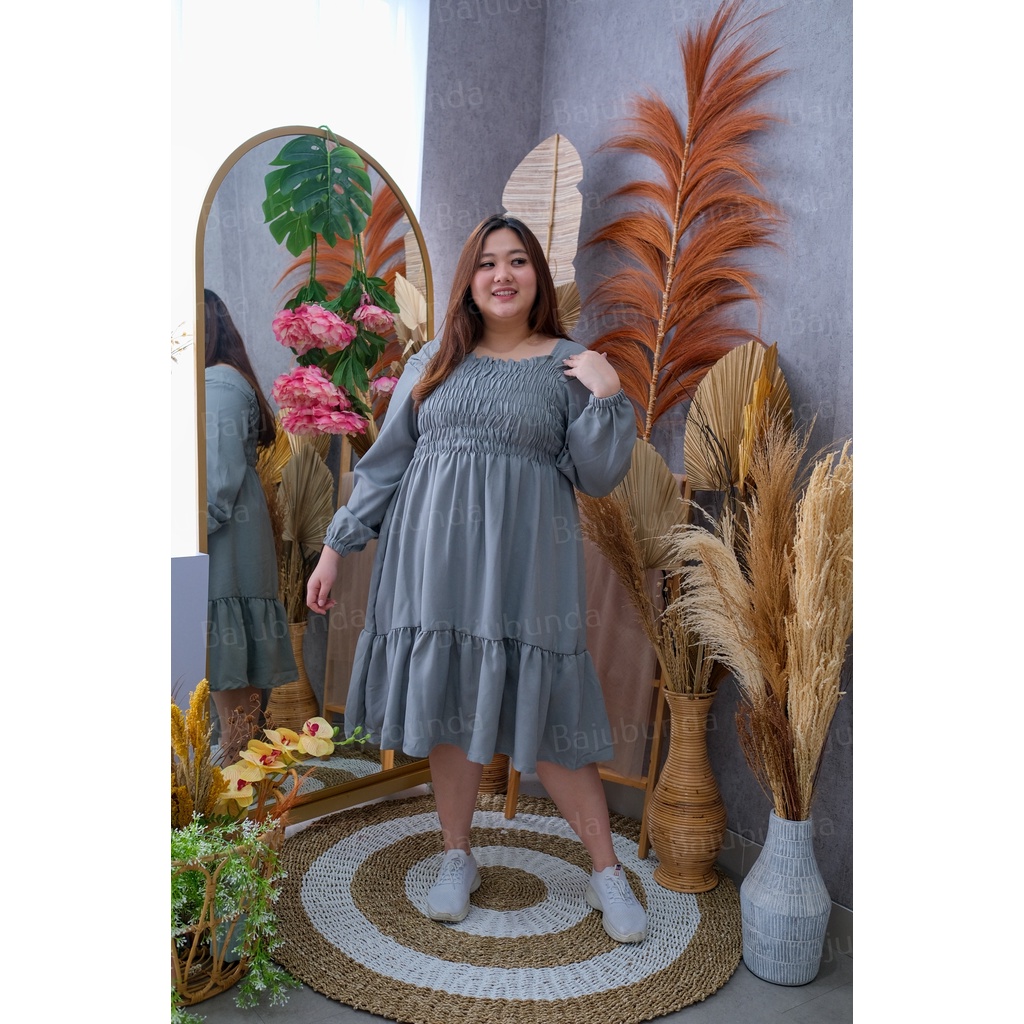 Kekurangan - Kekurangan membeli Bajubunda Dress Jumbo Wanita Big Size Polos Tangan Panjang MEGUMI di Toko ini