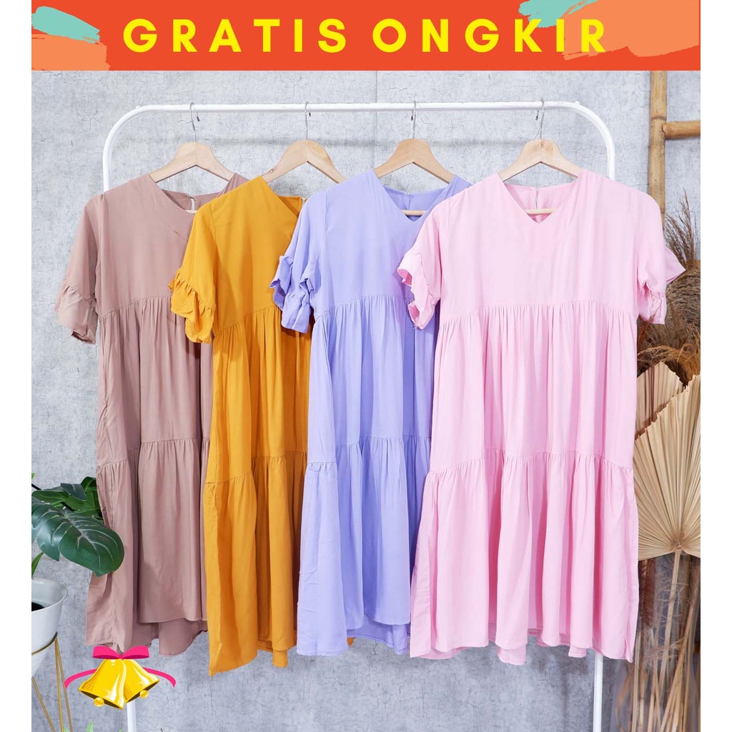 Alasan kenapa harus beli COTTONBELLS CASUAL DRESS WANITA JENIFER RUFFLE PLAID V MIDI (JJ - D 3980) sekarang
