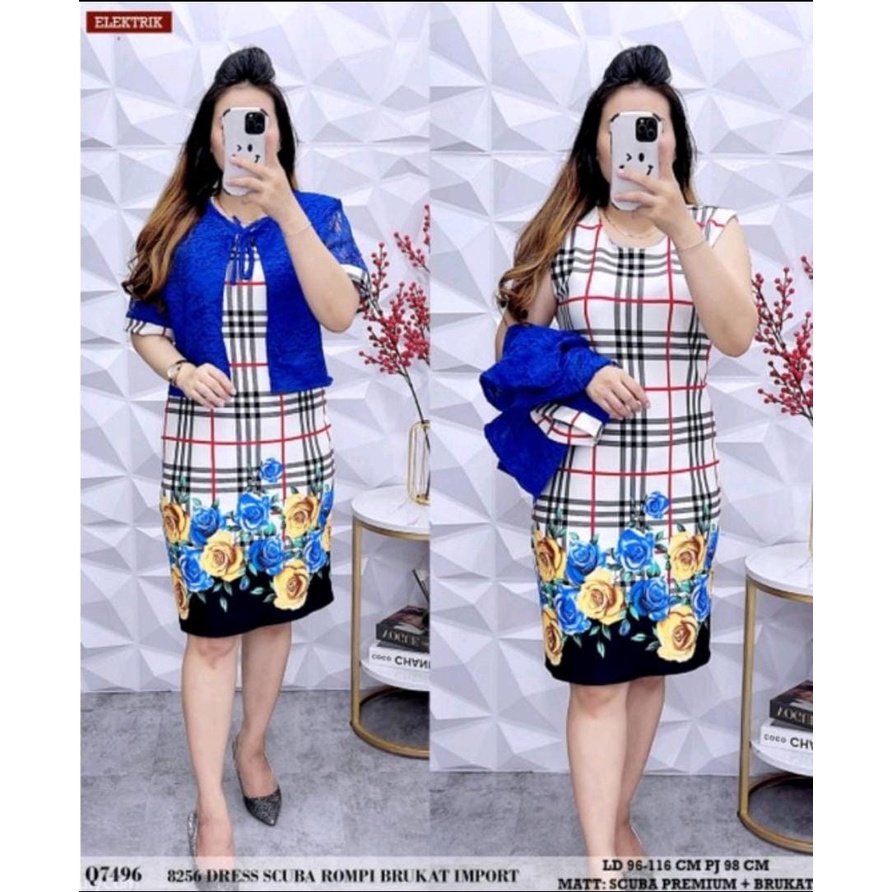 New..Dress Meyta bahan scuba strech kombinasi brokat/Dress Wanita Formal Motif Blubery/WSI