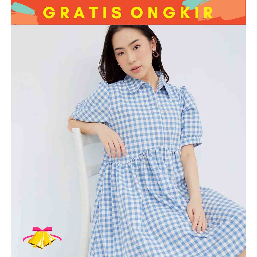 Alasan kenapa harus beli COTTONBELLS CASUAL DRESS WANITA NAYRA SQUARE RUFFLE PLAID TIED MIDI (HQ - D 4109) sekarang