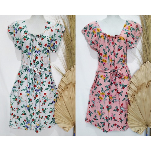 Sweet Honey ~ Dress Kerut Pendek Bali Safa Semok Smoken Motif Bunga Mawar Vanessa dan Etnik Tali Satu BH