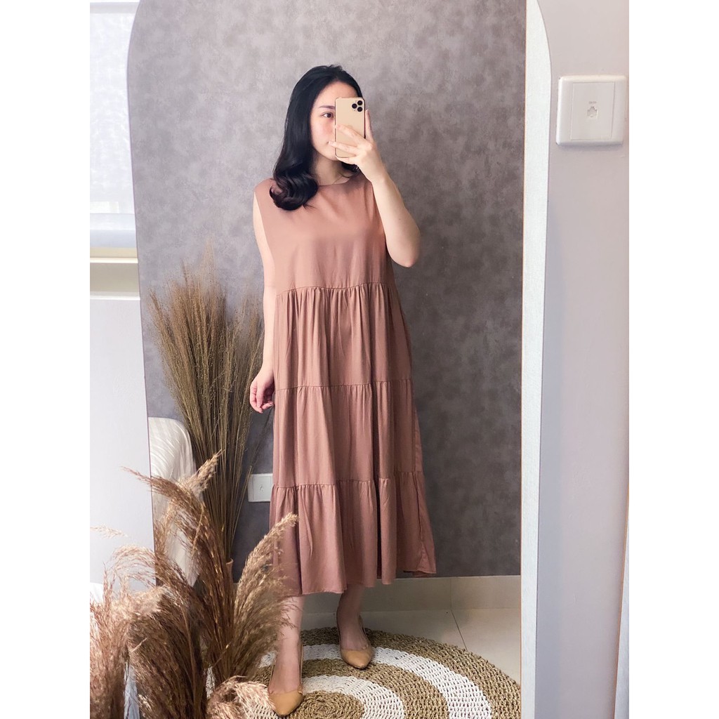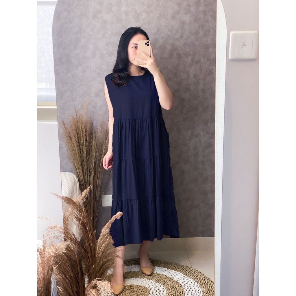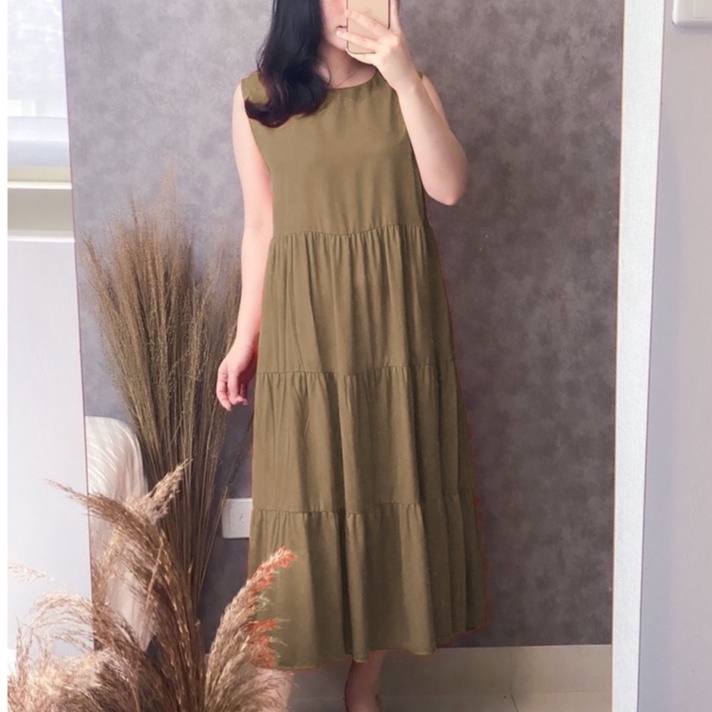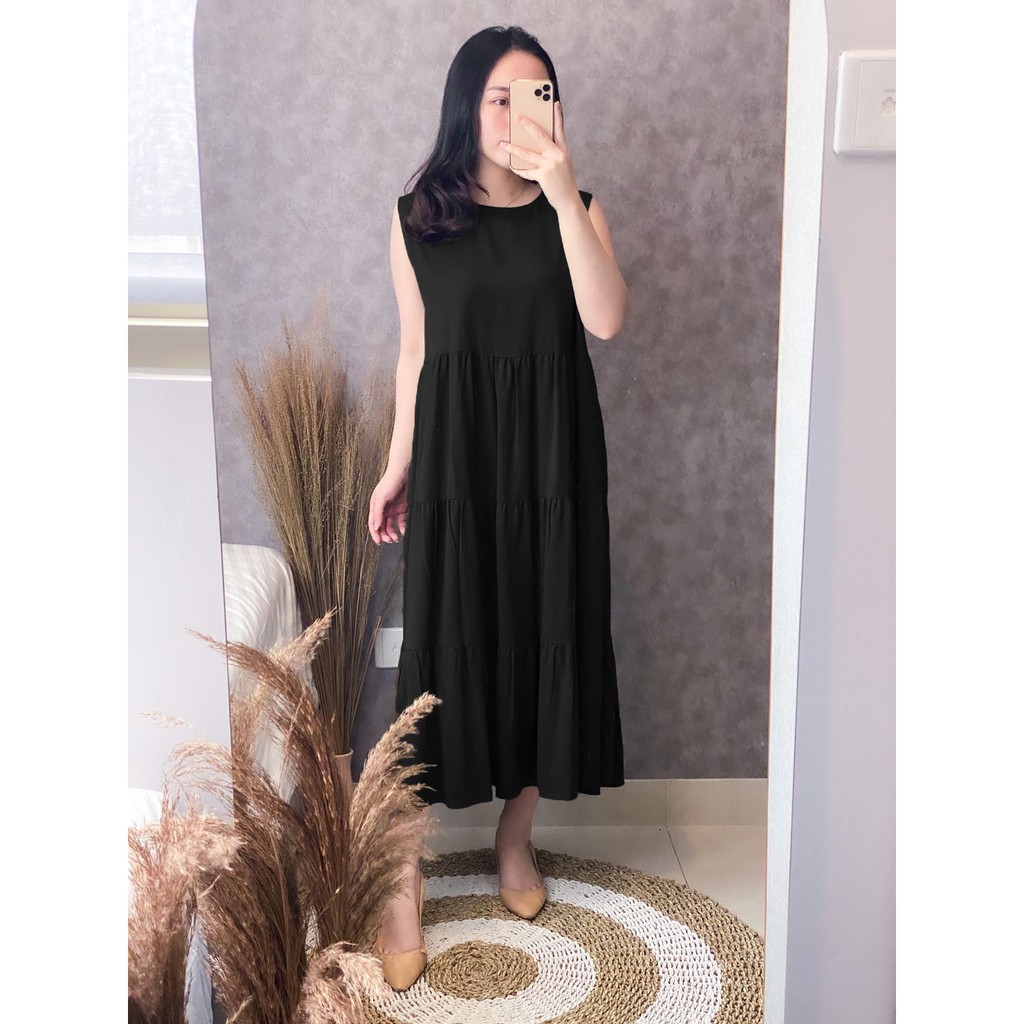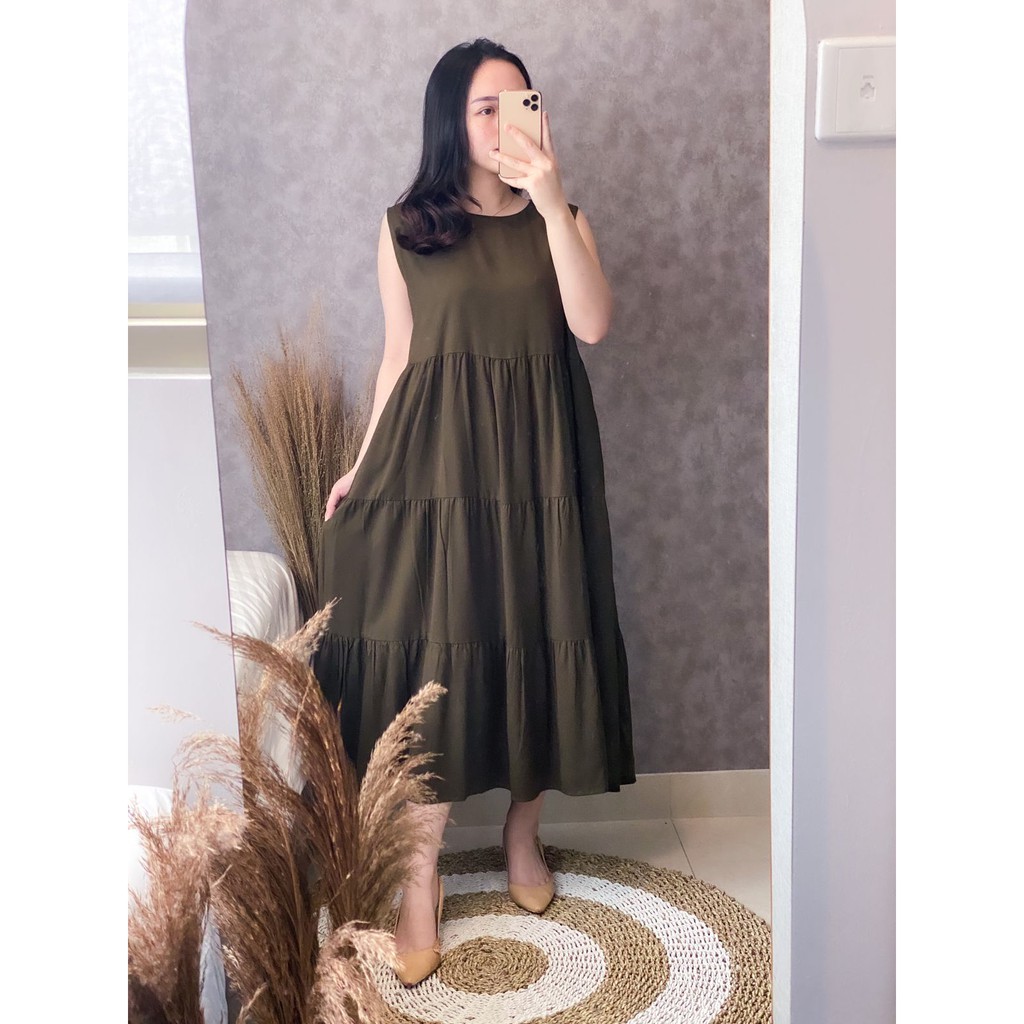Harga Tahta Kencana - Eleanor Midi Dress Sleeveless Bahan Rayon Premium | Midi Dress tanpa lengan terbaru