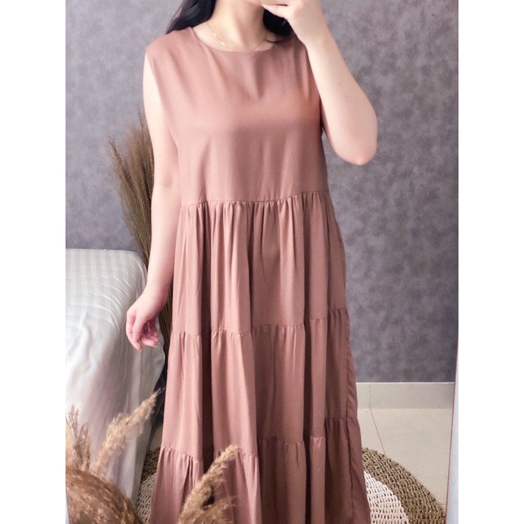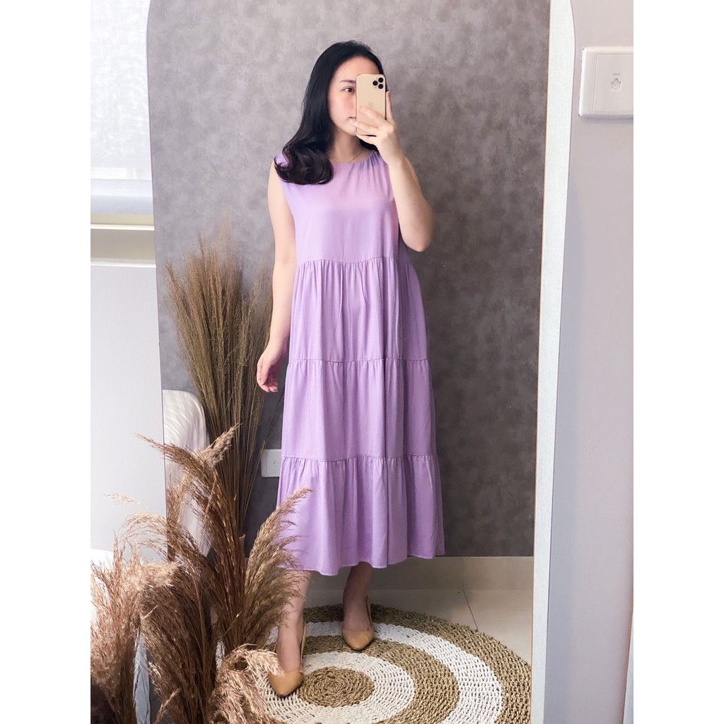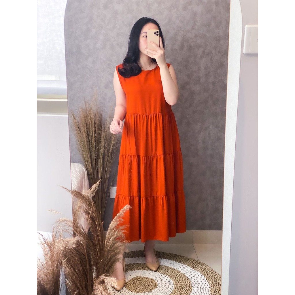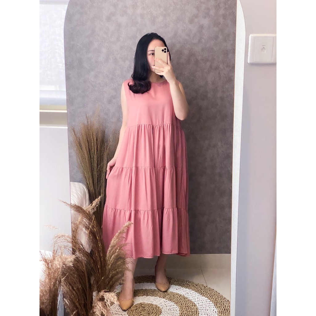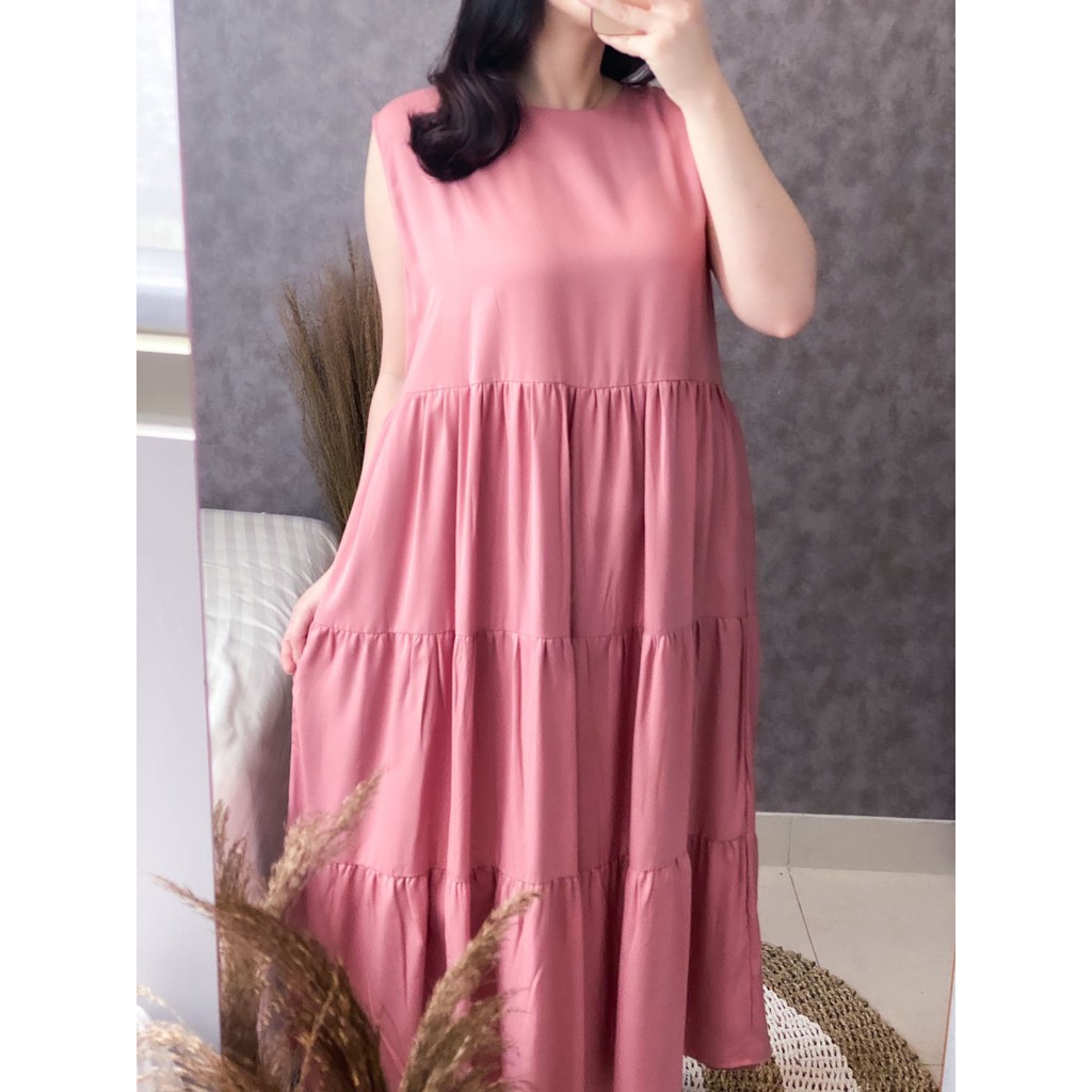 Harga Tahta Kencana - Eleanor Midi Dress Sleeveless Bahan Rayon Premium | Midi Dress tanpa lengan terbaru